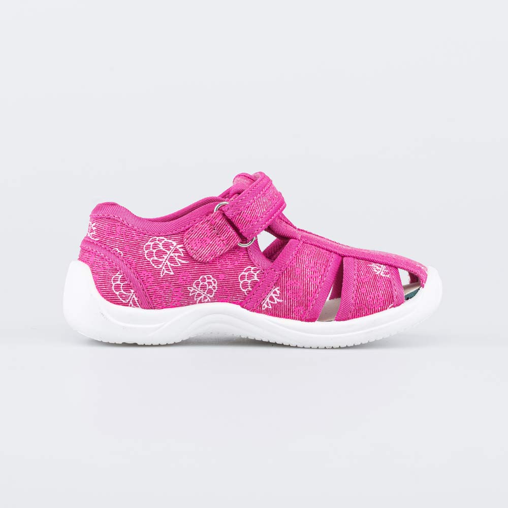 Текстильные сандалии для девочки подходят для жарких дней и повседневного использования в детском саду.