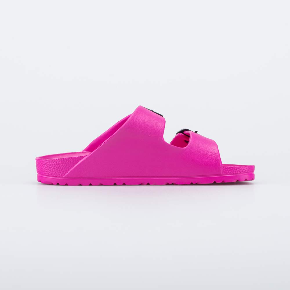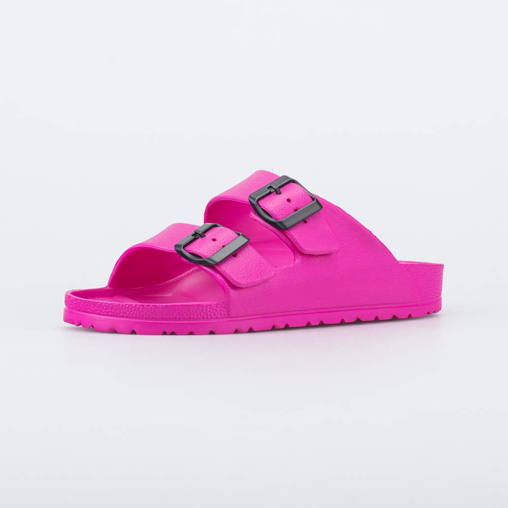 Яркие пляжные сланцы цвета фуксии подходят для девочки.