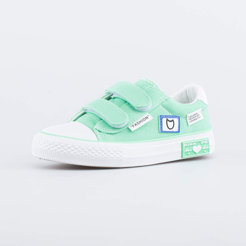Текстильные кеды для девочки украшены вышивкой и объемными мерцающими цветочками.