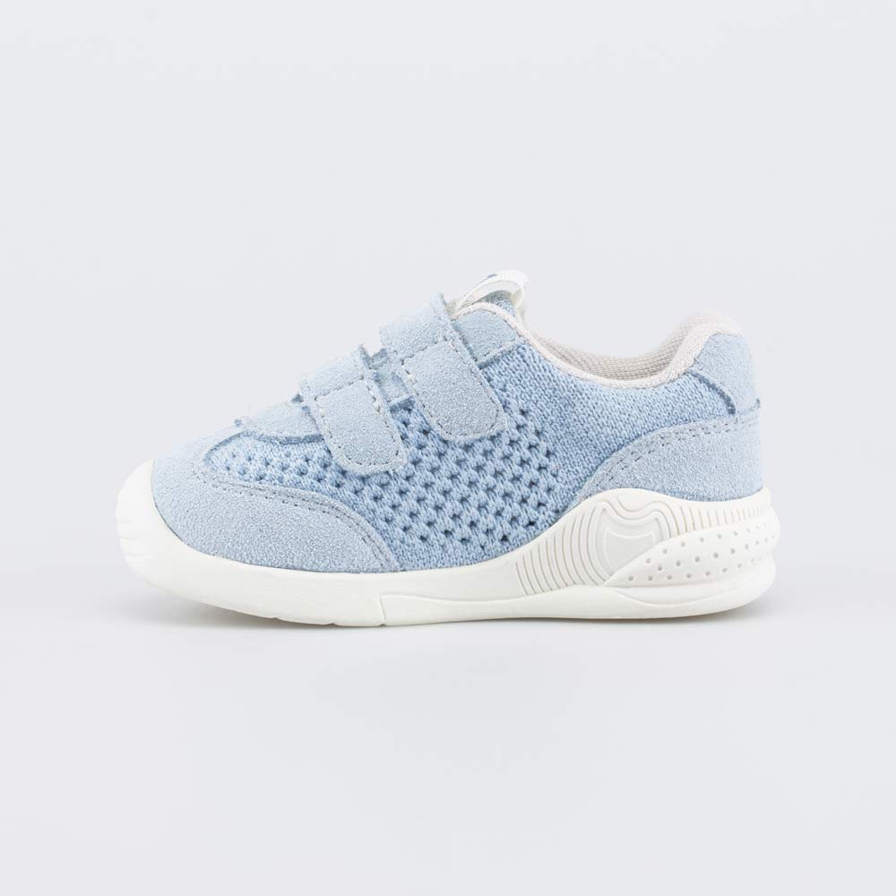 Детские кроссовки из вязаного текстиля выполнены в трендовом голубом цвете и подходят для малышей, которые уже начали активно ходить.