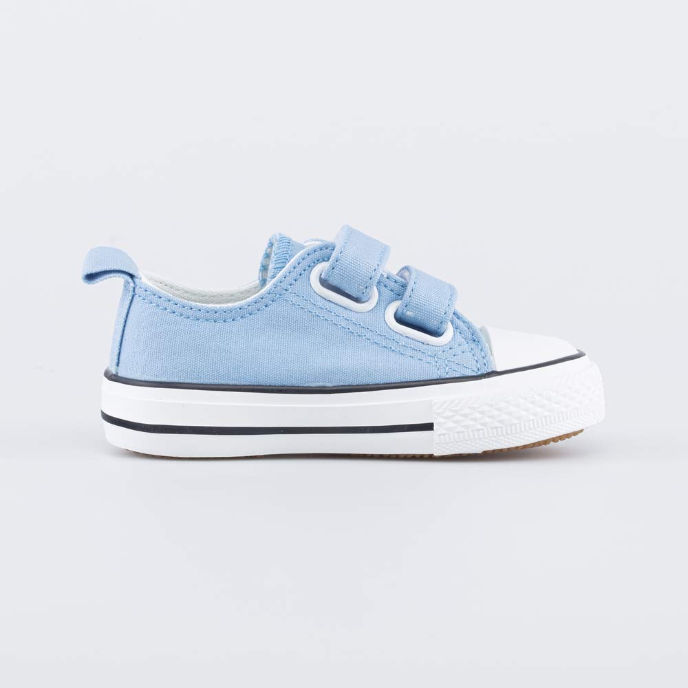 Эти голубые кеды имеют верх, подкладку и стельку из натурального хлопка, который обеспечивает комфортный микроклимат внутри детской обуви.