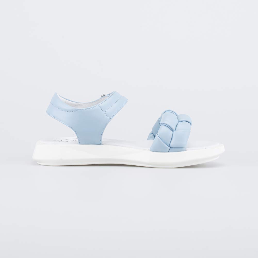 Босоножки для девочки подросткового возраста выполнены в нежно-голубом цвете, что позволяет создавать с ними разные летние образы.