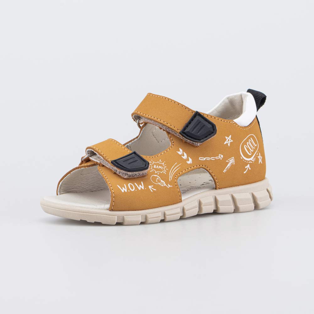 Кожаные сандалии на липучках разработаны для мальчика дошкольного возраста.