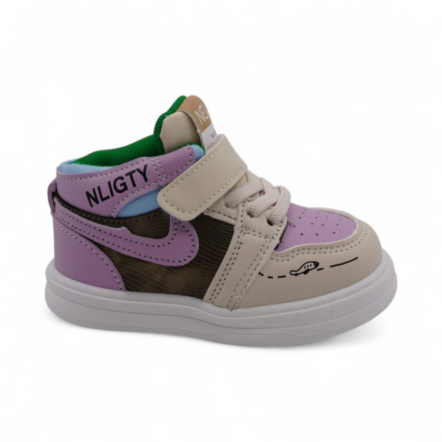 Кроссовки детские высокие 4264 бежево фиолетовые п/п