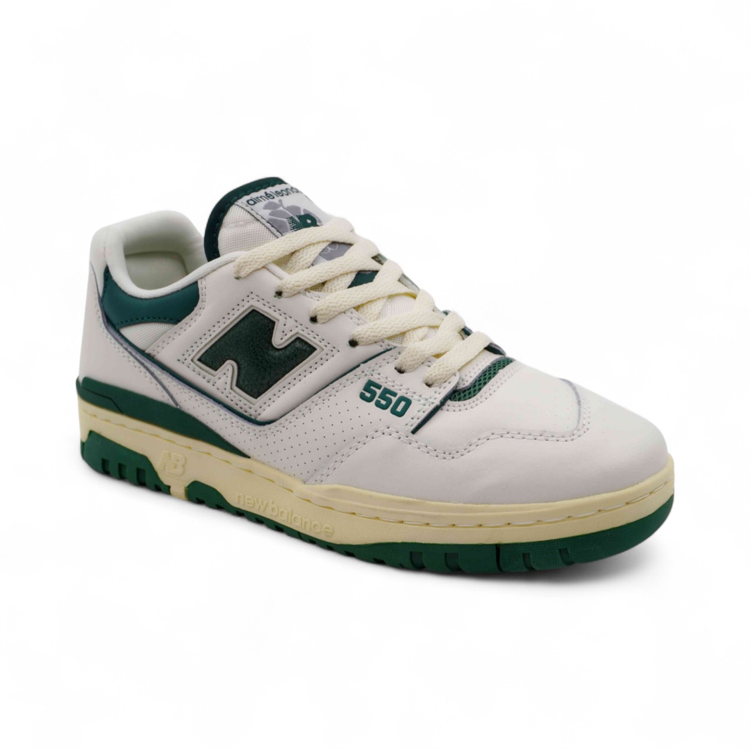 Кроссовки из натуральной кожи ВВ550 бело зеленые п/п