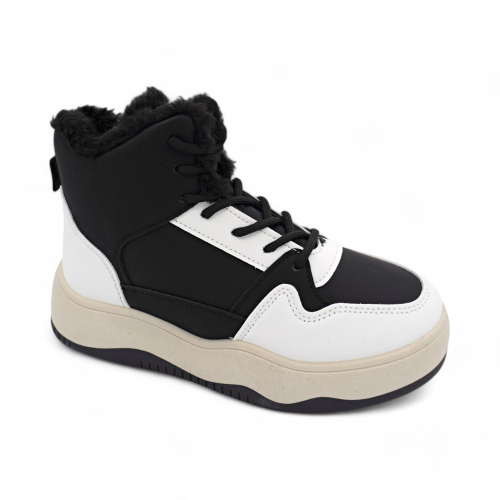 Кроссовки на меху К960-1 черно белые