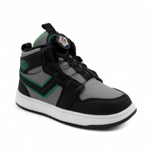 Кроссовки высокие демисезонные В8665-7 черно зеленые п/п