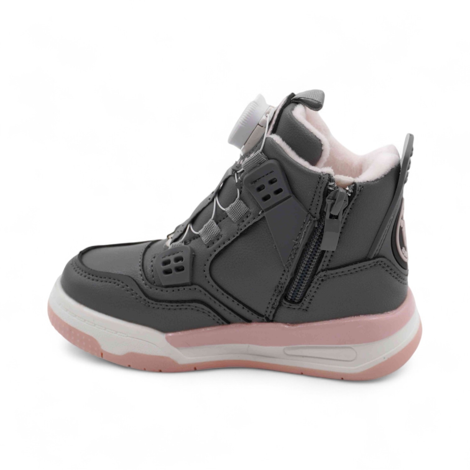 Кроссовки зимние на меху В7177-15 серо розовые