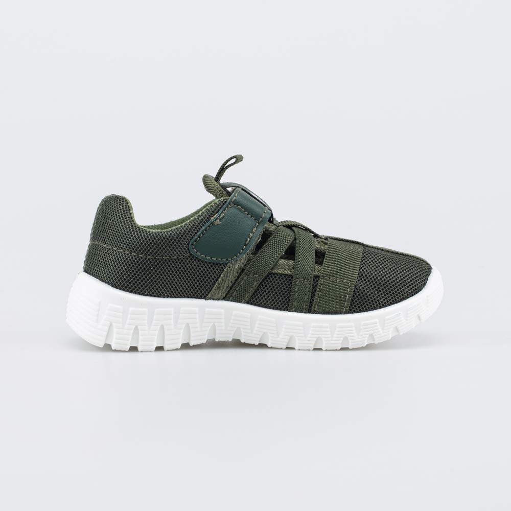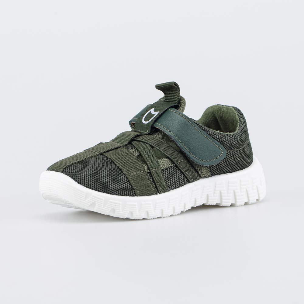 Оливковые текстильные кроссовки для мальчика подходят для жарких дней и повседневного использования в детском саду.