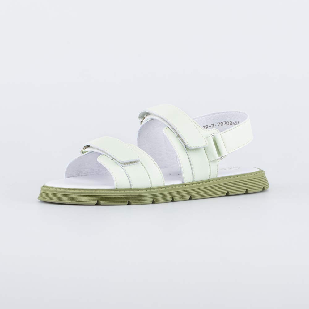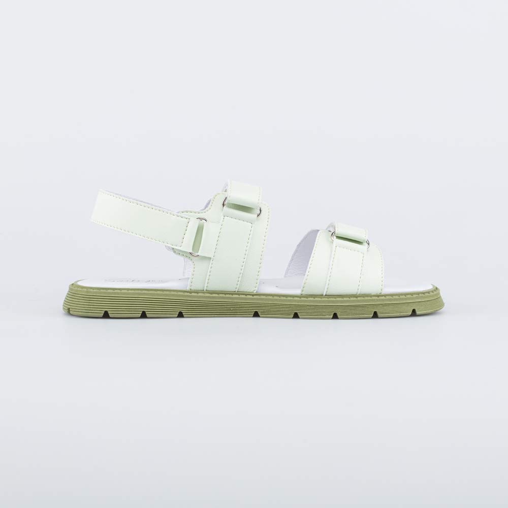Сандалии выполнены в нежном бело-оливковом цвете, поэтому их удобно сочетать с разными вариантами одежды.