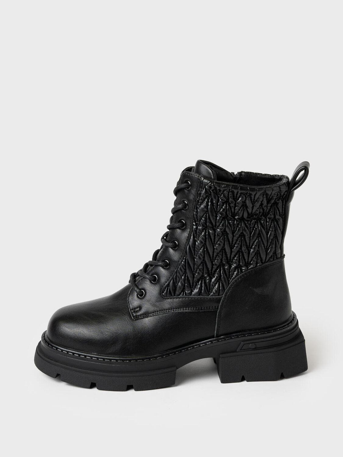 + верх из прочной искусственной кожи с мягким стёганым голенищем с эффектом вязки — обеспечивает надёжную защиту от холода и придаёт образу модный акцент