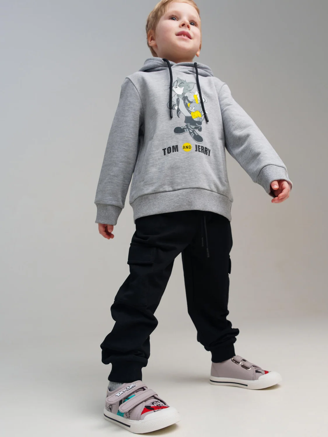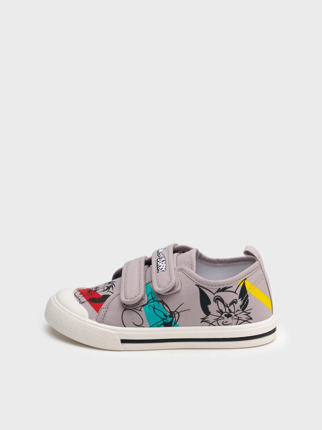 Кеды детские для мальчика. Стильные текстильные кеды с принтом любимых героев WARNER BROTHERS (Уорнер Бразерс): мышонком Джерри (Jerry) и котом Томом (Tom). Две застежки-липучки очень удобны при обувании. В обуви используется текстильная подкладка c 80% содержанием хлопка, которая обладает высокой гигроскопичностью. Стелька выполнена из свиной натуральной кожи и имеет анатомический элемент для поддержания свода стопы. Стелька съемная. Облегченная подошва из ПВХ гибкая, не скользит и устойчива к истиранию.