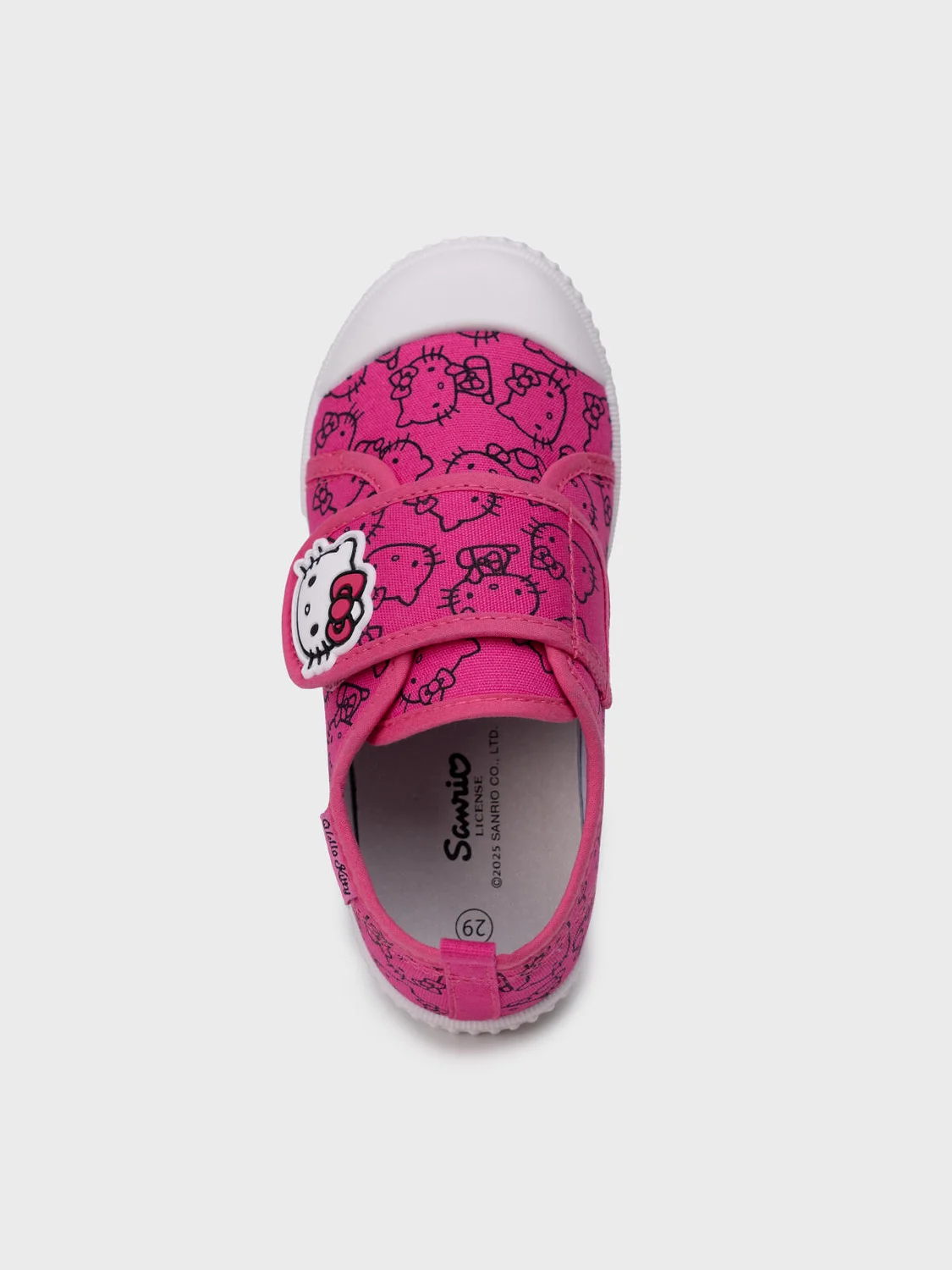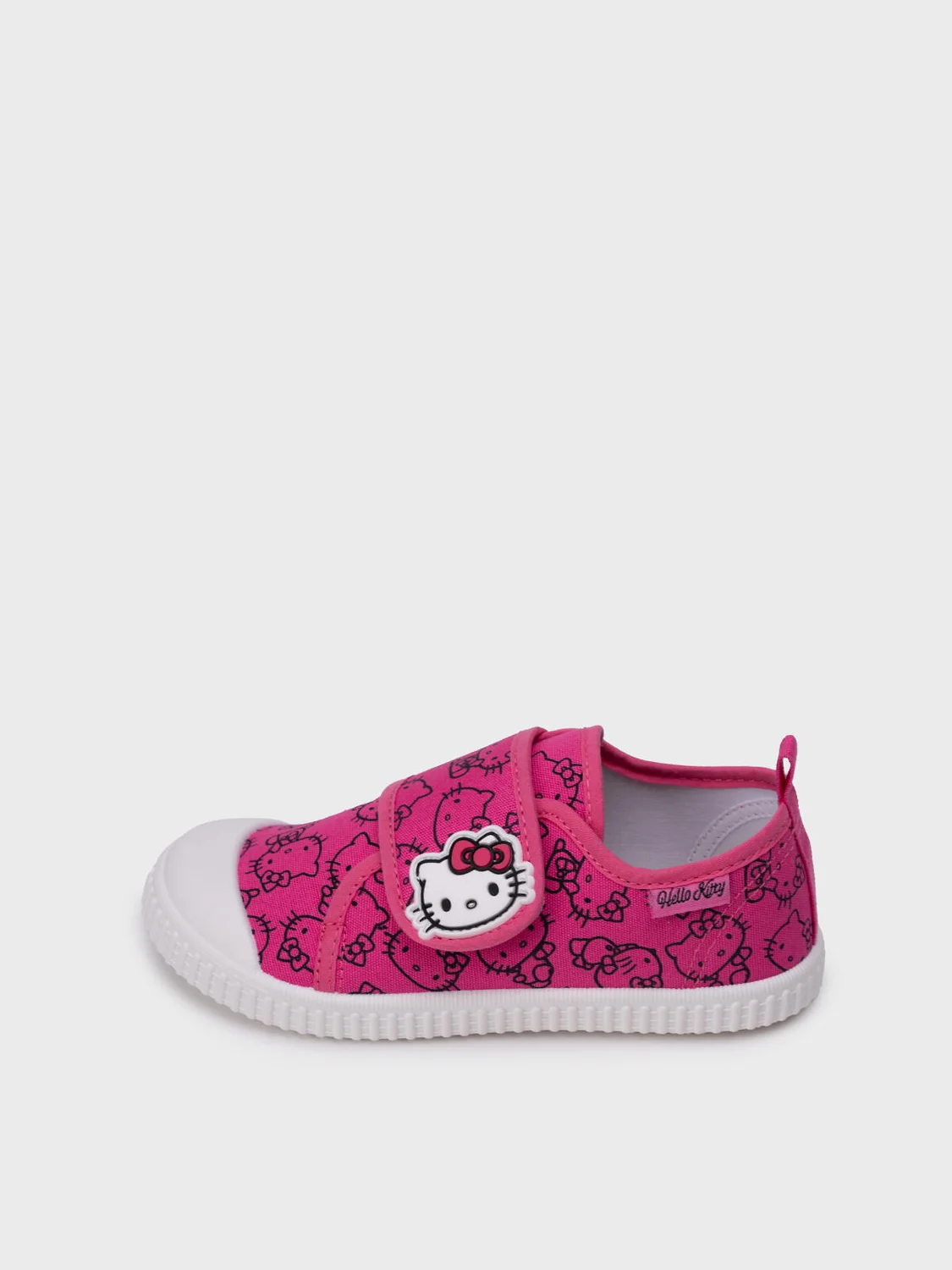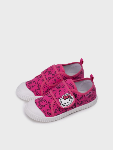 Кеды детские для девочки. Текстильные кеды с любимым героем HELLO KITTY. Модель на широкой липучке, которая позволяет ребенку обуваться самостоятельно. В обуви используется текстильная подкладка c 100% содержанием хлопка, которая обладает высокой гигроскопичностью. Стелька выполнена из свиной натуральной кожи и имеет анатомический элемент для поддержания свода стопы. Стелька съемная. Облегченная подошва из ПВХ гибкая, не скользит и устойчива к истиранию.