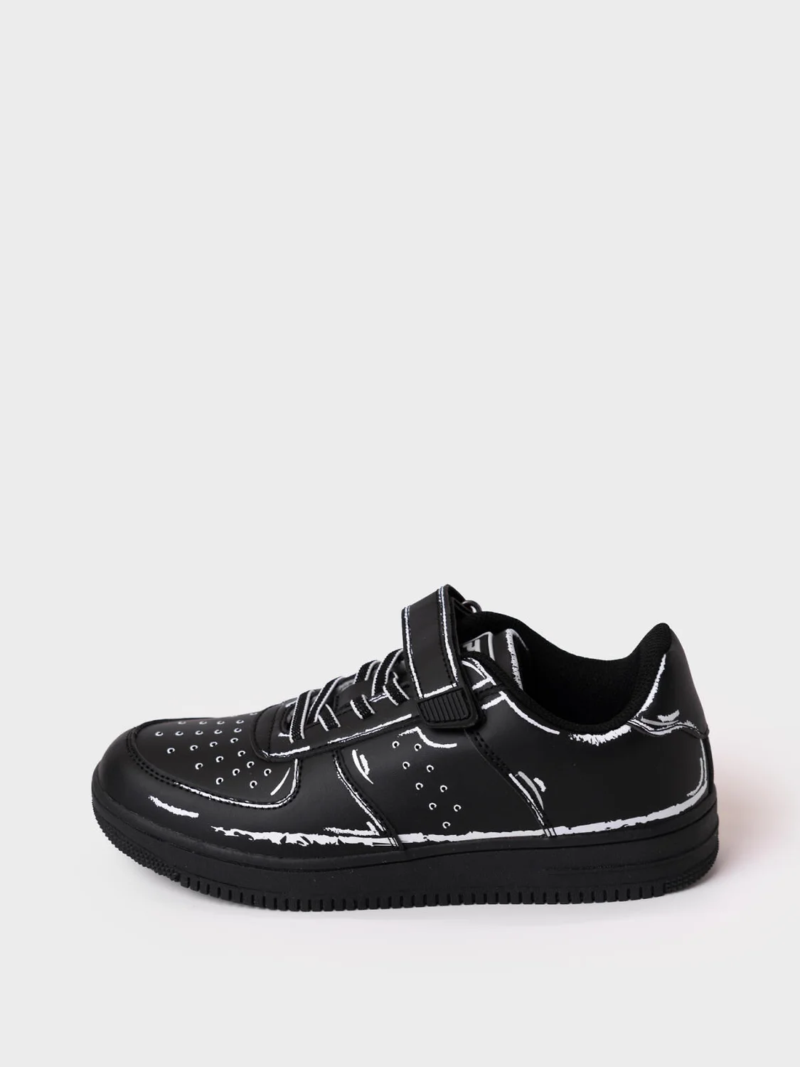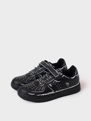 Трендовые кеды для мальчика подростка. Кроссовки выполнены из искусственной кожи с принтом с эффектом FAKE DETAILES (вся конструкция кроссовок как будто нарисована карандашом). Эластичные шнурки и липучка создают удобство при обувании. В носочной части обуви стоит текстильная подкладка c высоким содержанием хлопка 80%, которая обладает высокой гигроскопичностью. В пяточной части обуви текстильная подкладка обладает хорошей износостойкостью. Профилированная съемная стелька из натуральной кожи с анатомической формой подсводника обеспечивает правильную нагрузку на стопу. Формоустойчивый задник поддерживает стопу в правильном положении. Эргономичная форма колодки обеспечивает правильное формирование стопы ребенка. Подошва из ТПР гибкая, не скользит и устойчива к истиранию.
