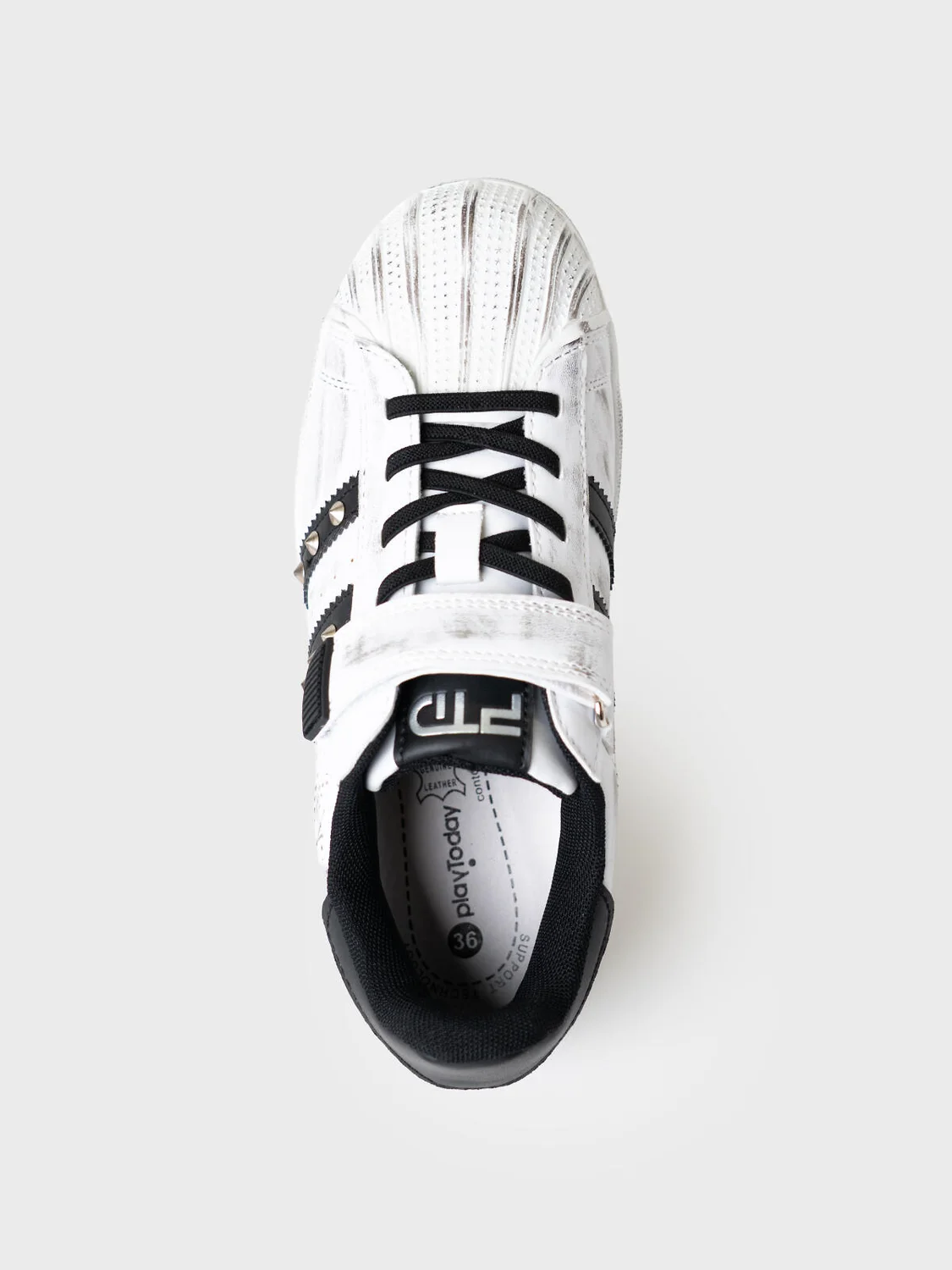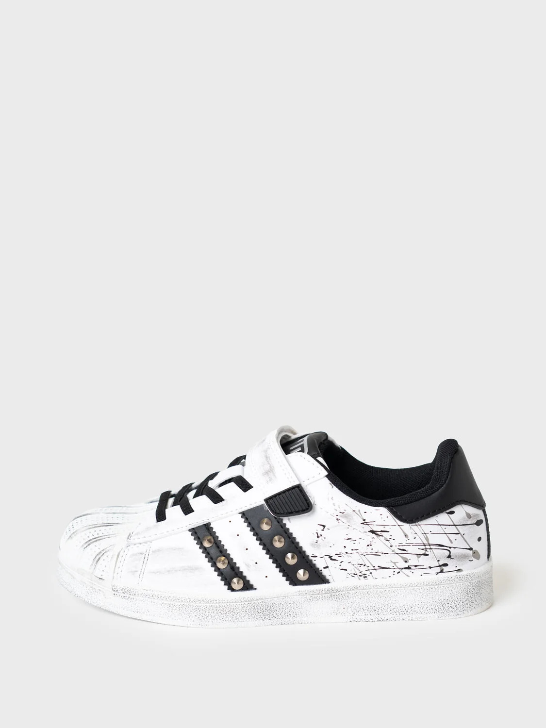 Трендовые кеды для мальчика подростка. Кроссовки выполнены из искусственной кожи с эффектом DIRTY SHOES (грязная, потертая обувь). Эластичные шнурки и липучка создают удобство при обувании. В носочной части обуви стоит текстильная подкладка c высоким содержанием хлопка 80%, которая обладает высокой гигроскопичностью. В пяточной части обуви текстильная подкладка обладает хорошей износостойкостью. Профилированная съемная стелька из натуральной кожи с анатомической формой подсводника обеспечивает правильную нагрузку на стопу. Формоустойчивый задник поддерживает стопу в правильном положении. Эргономичная форма колодки обеспечивает правильное формирование стопы ребенка. Подошва из ТПР не скользит и устойчива к истиранию. Форма подошвы имеет резиновую носочную часть, которая полностью защищает носочную часть от истирания.