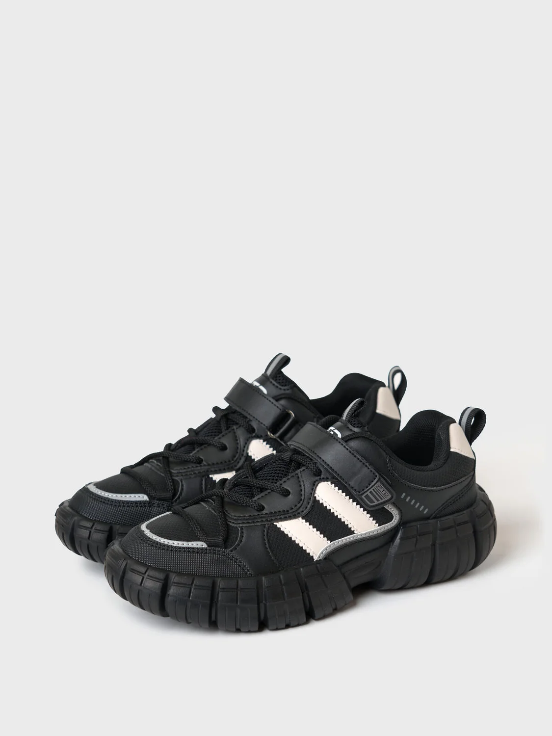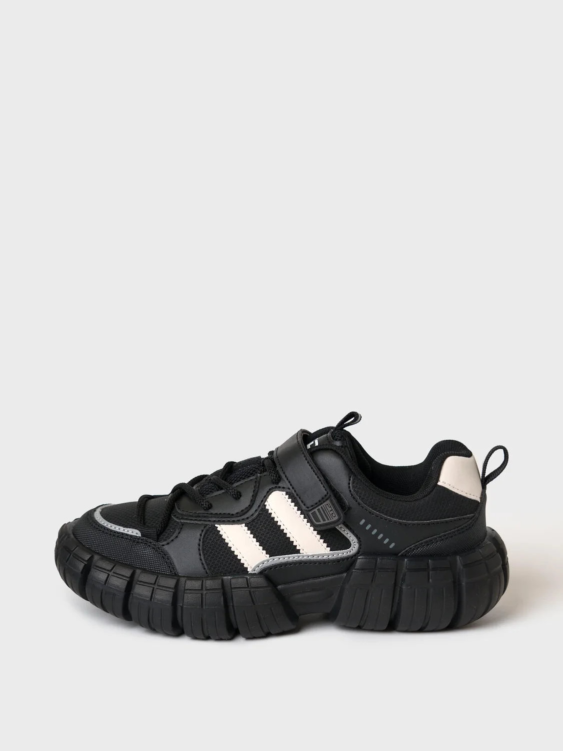 Модные кроссовки для мальчика-подроста на толстой подошве в виде шины. Эластичные шнурки и липучка создают удобство при обувании. Кроссовки выполнены из дышащего текстиля и искусственной кожи с повышенной износостойкостью. Профилированная съемная стелька из натуральной кожи с анатомической формой подсводника обеспечивает правильную нагрузку на стопу. В носочной части обуви стоит текстильная подкладка c высоким содержанием хлопка 80%, которая обладает высокой гигроскопичностью. В пяточной части обуви текстильная подкладка обладает хорошей износостойкостью. Кроссовки имеют светоотражающие элементы. Формоустойчивый задник поддерживает стопу в правильном положении. Эргономичная форма колодки обеспечивает правильное формирование стопы ребенка. Подошва из ЭВА очень легкая.
