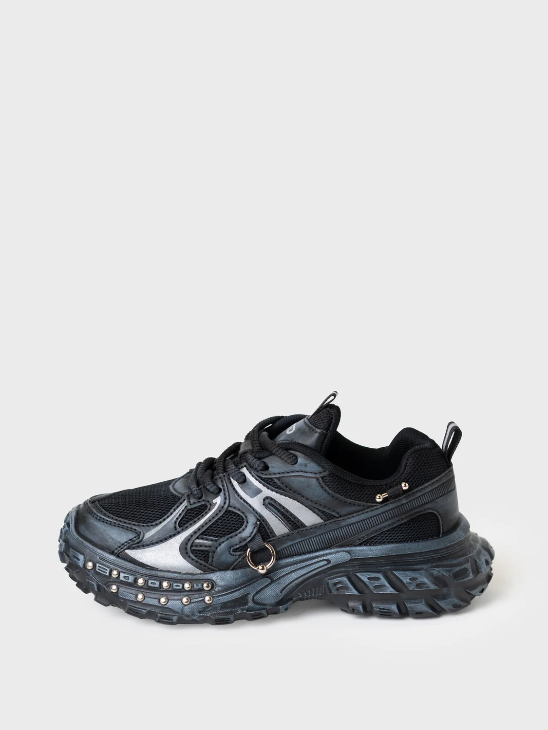 Молодежные кроссовки на массивной подошве. Подошва и верх обуви декорированы металлическими клепками и пирсингом. Кроссовки выполнены из дышащего текстиля и искусственной кожи с повышенной износостойкостью. Верх обуви и подошва имеют эффект затертости. Профилированная съемная стелька из натуральной кожи с анатомической формой подсводника обеспечивает правильную нагрузку на стопу. В носочной части обуви стоит текстильная подкладка c высоким содержанием хлопка 80%, которая обладает высокой гигроскопичностью. В пяточной части обуви текстильная подкладка обладает хорошей износостойкостью. Кроссовки имеют светоотражающие элементы. Формоустойчивый задник поддерживает стопу в правильном положении. Эргономичная форма колодки обеспечивает правильное формирование стопы ребенка. При всей своей массивности подошва из ЭВА очень легкая.