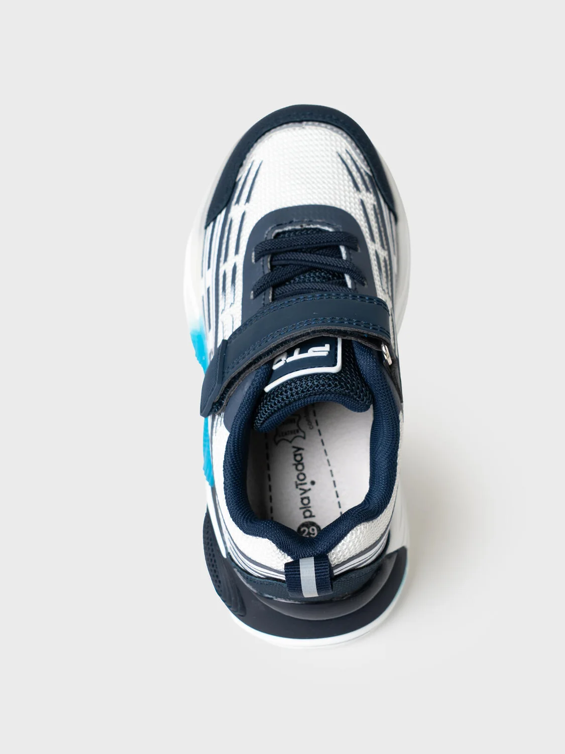 Кроссовки для мальчика с подошвой с LED-подсветкой Кроссовки выполнены из дышащего текстиля и искусственной кожи с повышенной износостойкостью. Эластичные шнурки и липучка создают удобство при обувании. Профилированная съемная стелька из натуральной кожи с анатомической формой подсводника обеспечивает правильную нагрузку на стопу. В носочной части обуви стоит текстильная подкладка c высоким содержанием хлопка 80%, которая обладает высокой гигроскопичностью. В пяточной части обуви текстильная подкладка обладает хорошей износостойкостью. Кроссовки имеют светоотражающие элементы. Формоустойчивый задник поддерживает стопу в правильном положении. Эргономичная форма колодки обеспечивает правильное формирование стопы ребенка. Подошва из ЭВА очень легкая.