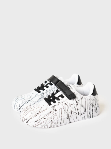 Трендовые кеды для девочки подростка. Кроссовки выполнены из искусственной кожи с оригинальным светоотражающим принтом - обувь как будто забрызгана краской. Эластичные шнурки и липучка создают удобство при обувании. В носочной части обуви стоит текстильная подкладка c высоким содержанием хлопка 80%, которая обладает высокой гигроскопичностью. В пяточной части обуви текстильная подкладка обладает хорошей износостойкостью. Профилированная съемная стелька из натуральной кожи с анатомической формой подсводника обеспечивает правильную нагрузку на стопу. Формоустойчивый задник поддерживает стопу в правильном положении. Эргономичная форма колодки обеспечивает правильное формирование стопы ребенка. Подошва из ТПР гибкая, не скользит и устойчива к истиранию.
