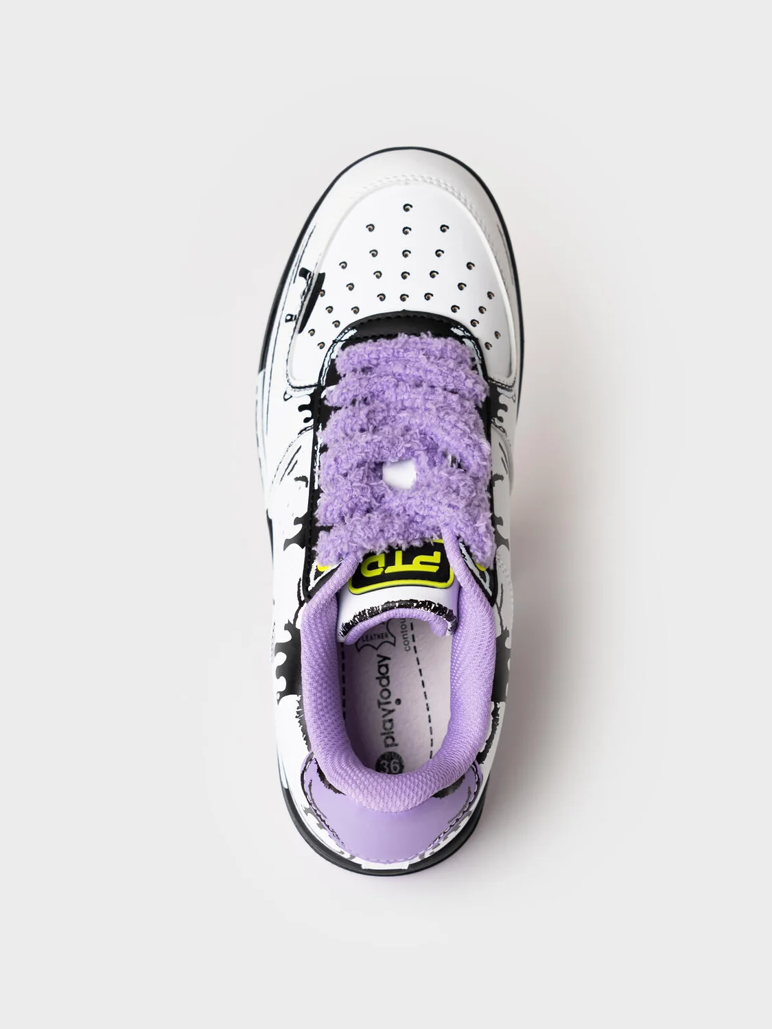 Трендовые кеды для девочки подростка. Кроссовки выполнены из искусственной кожи с принтом с эффектом FAKE DETAILES (вся конструкция кроссовок как будто нарисована карандашом). Кроссовки имеют эластичные шнурки, которые позволяют обувать их без завязывания. Толстые махровые шнурки играют декоративную роль. В носочной части обуви стоит текстильная подкладка c высоким содержанием хлопка 80%, которая обладает высокой гигроскопичностью. В пяточной части обуви текстильная подкладка обладает хорошей износостойкостью. Профилированная съемная стелька из натуральной кожи с анатомической формой подсводника обеспечивает правильную нагрузку на стопу. Формоустойчивый задник поддерживает стопу в правильном положении. Эргономичная форма колодки обеспечивает правильное формирование стопы ребенка. Подошва из ТПР гибкая, не скользит и устойчива к истиранию.