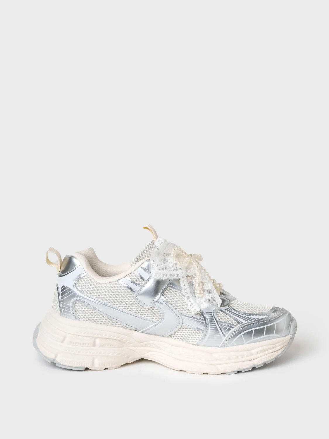 Кроссовки для девочки подростка выполнены из дышащего текстиля и искусственной серебряной кожи, обладающей высокими износостойкими свойствами. Кроссовки имеют резиновые шнурки и липучку. На шнурках имеется трендовый декор из ажурной тесьмы и жемчужных бус. В носочной части обуви стоит текстильная подкладка c высоким содержанием хлопка 80%, которая обладает высокой гигроскопичностью. В пяточной части обуви текстильная подкладка обладает хорошей износостойкостью. Двухсоставная подошва из ЭВА и ТПР легкая и гибкая. Вставки из ТПР в носочной и пяточной частях предотвращают быстрый износ подошвы и делают ее нескользкой. Профилированная стелька из натуральной кожи с анатомической формой подсводника обеспечивает правильную нагрузку на стопу. Формоустойчивый задник поддерживает стопу в правильном положении. Эргономичная форма колодки обеспечивает правильное формирование стопы ребенка.
