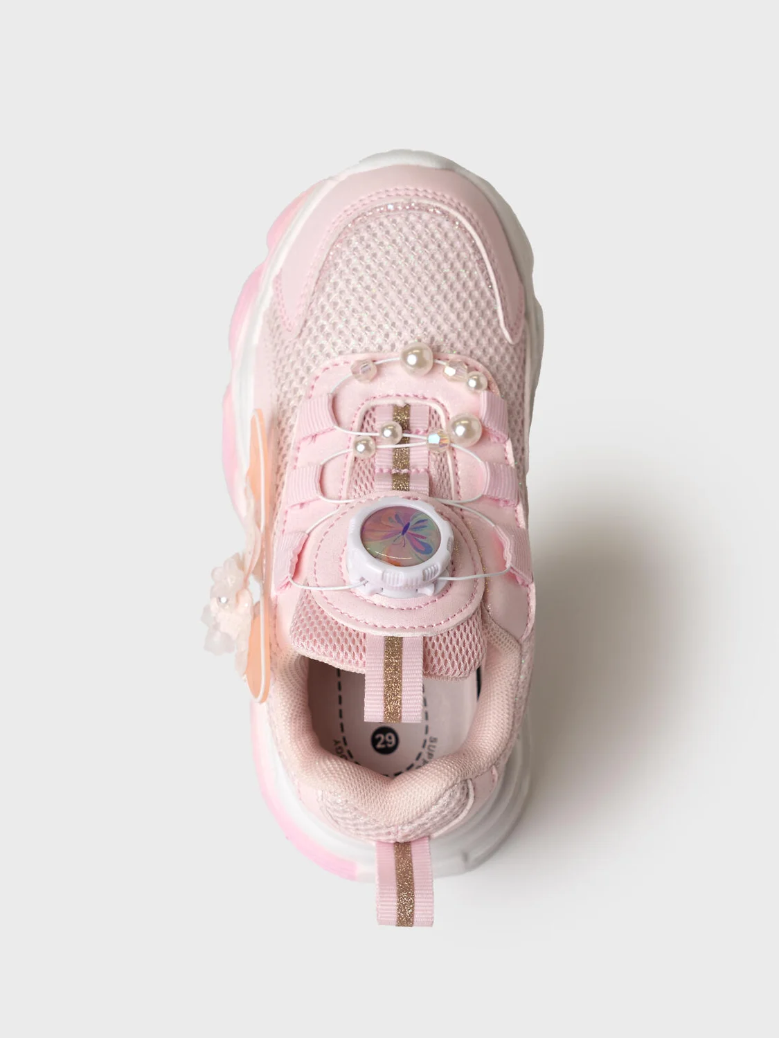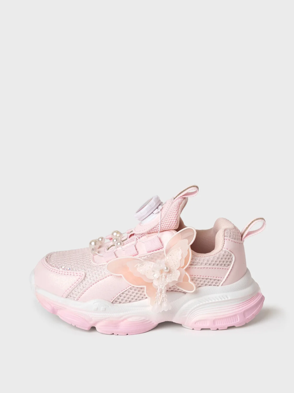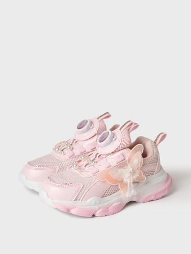 Кроссовки для девочки с системой быстрой шнуровки Кроссовки выполнены из дышащего текстиля и искусственной кожи с повышенной износостойкостью. Сбоку кроссовки декорированы объемной бабочкой. Профилированная съемная стелька из натуральной кожи с анатомической формой подсводника обеспечивает правильную нагрузку на стопу. В носочной части обуви стоит текстильная подкладка c высоким содержанием хлопка 80%, которая обладает высокой гигроскопичностью. В пяточной части обуви текстильная подкладка обладает хорошей износостойкостью. Кроссовки имеют светоотражающие элементы. Формоустойчивый задник поддерживает стопу в правильном положении. Эргономичная форма колодки обеспечивает правильное формирование стопы ребенка. Подошва из ЭВА очень легкая и гибкая.