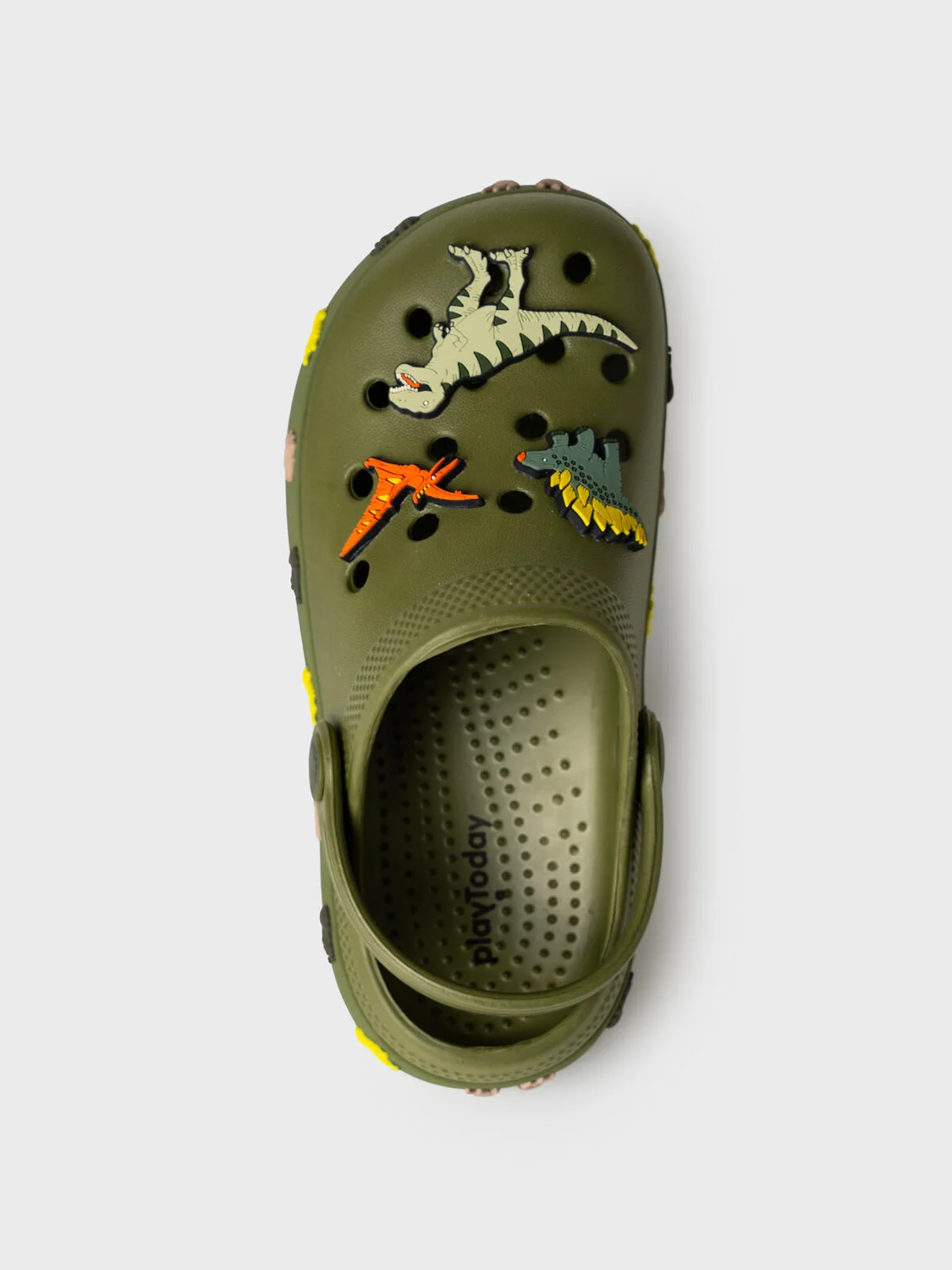 Сабо детские для мальчика. Сабо из облегченного и прочного ЭВА. Материал хорошо моется. Модель украшена джибицами динозавров. Форма модели учитывает эргономику стопы. Модель имеет перекидной ремешок для лучшей фиксации обуви на ноге. Благодаря вентиляционным отверстиям сабо проветриваются, ноги ребенка дышат и не потеют.