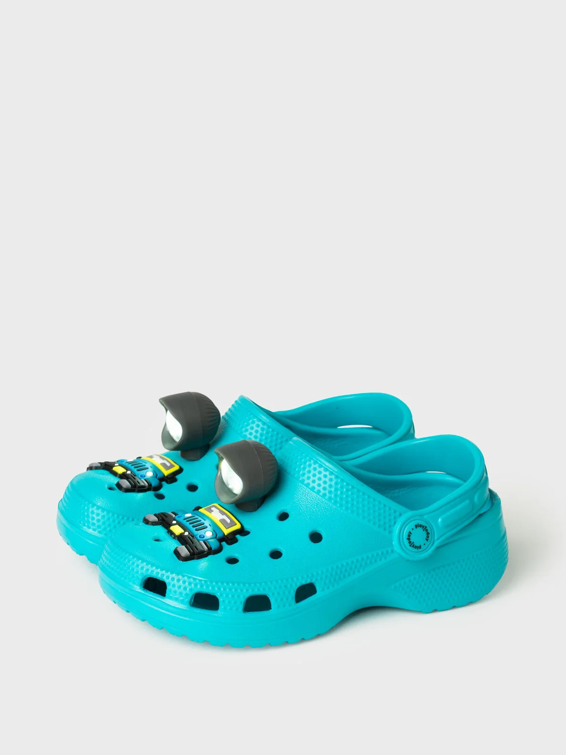 Сабо детские для мальчика. Сабо из облегченного и прочного ЭВА. Материал хорошо моется. Модель украшена патчем машинкой и джибицами фарами, которые имеют несколько режимов подсветки. Этот игровой элемент понравится и детям и их родителям, так как ребенка очень хорошо будет видно в темноте. Форма модели учитывает эргономику стопы. Модель имеет перекидной ремешок для лучшей фиксации обуви на ноге. Благодаря вентиляционным отверстиям сабо проветриваются, ноги ребенка дышат и не потеют.