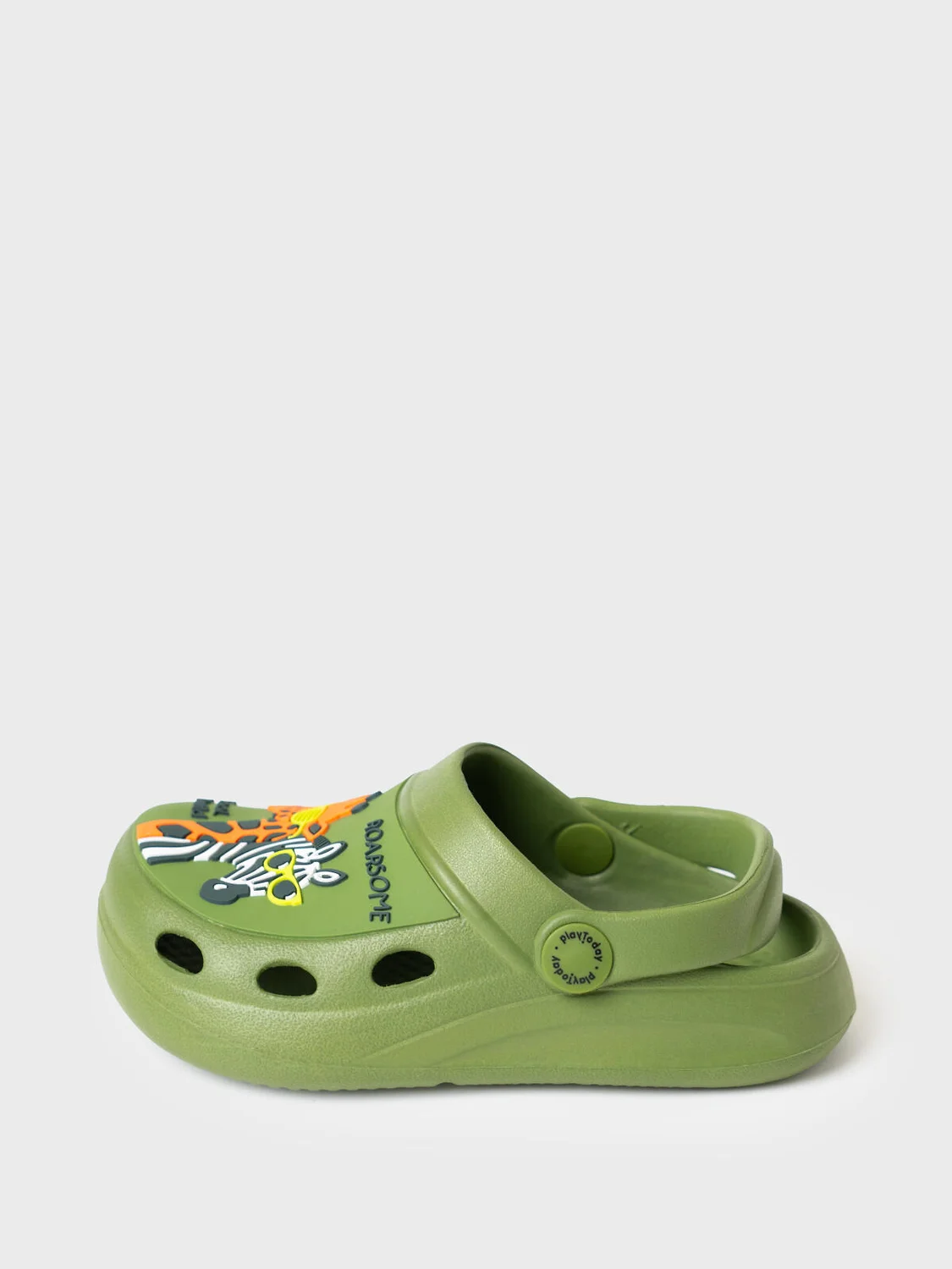 Сабо детские для мальчика. Сабо из облегченного и прочного ЭВА. Материал хорошо моется. Объемный рисунок на правой и левой полупарах рассказывают нам целую историю мира зоопарка. Форма модели учитывает эргономику стопы. Модель имеет перекидной ремешок для лучшей фиксации обуви на ноге. Благодаря вентиляционным отверстиям сабо проветриваются, ноги ребенка дышат и не потеют.