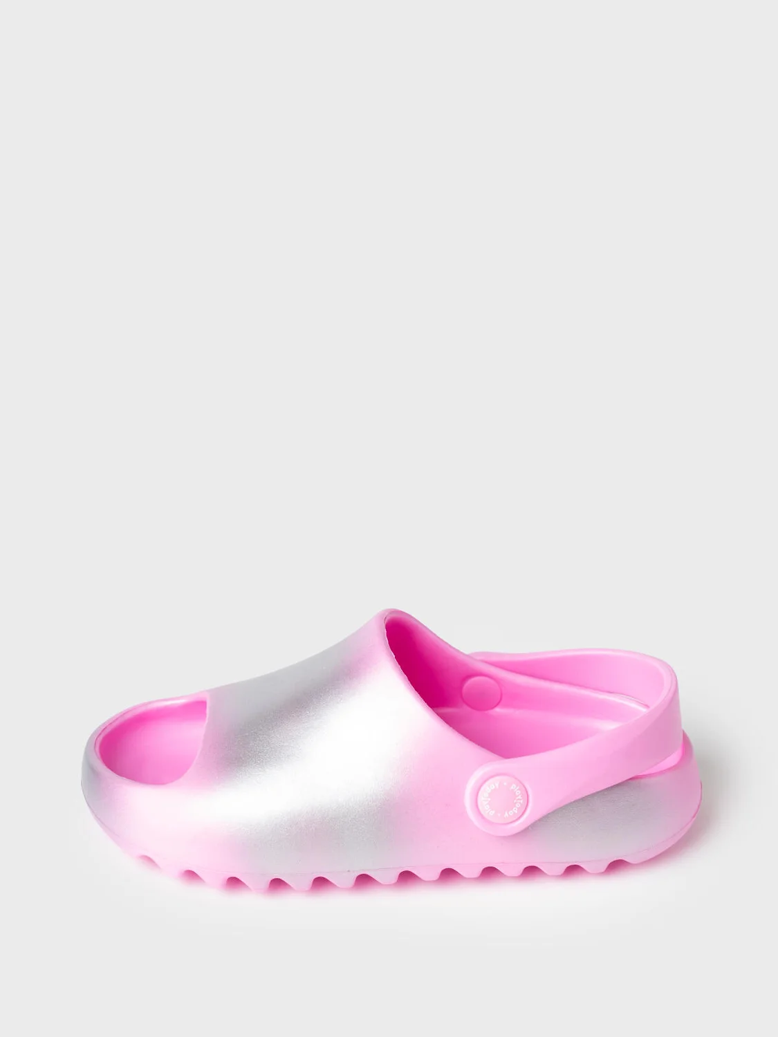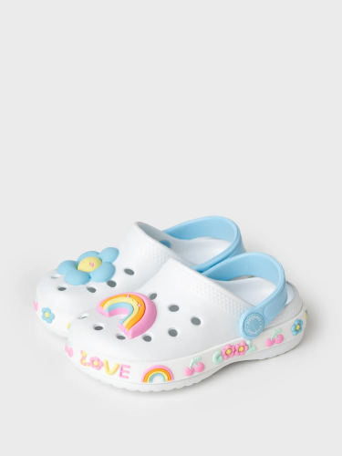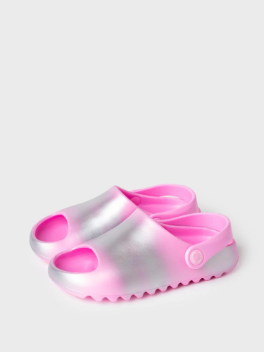 Сабо детские для девочки. Сабо из облегченного и прочного ЭВА. Модель имеет перламутрово-серебряный градиент окрашивания. Материал хорошо моется. Форма модели учитывает эргономику стопы. Модель имеет перекидной ремешок для лучшей фиксации обуви на ноге.