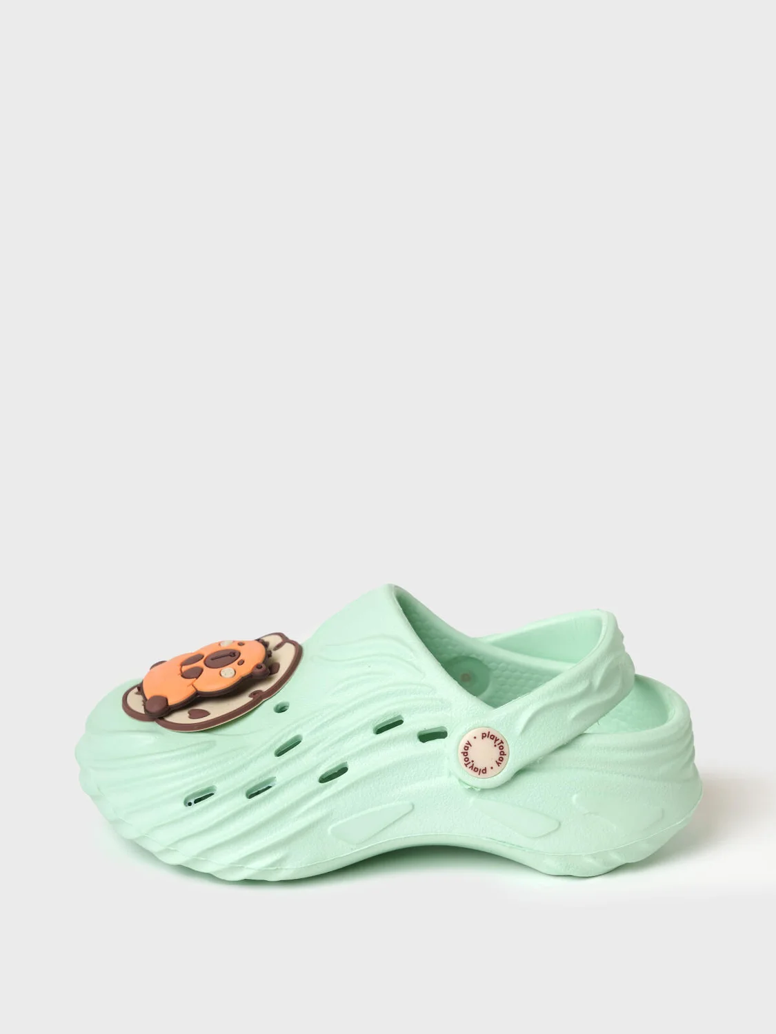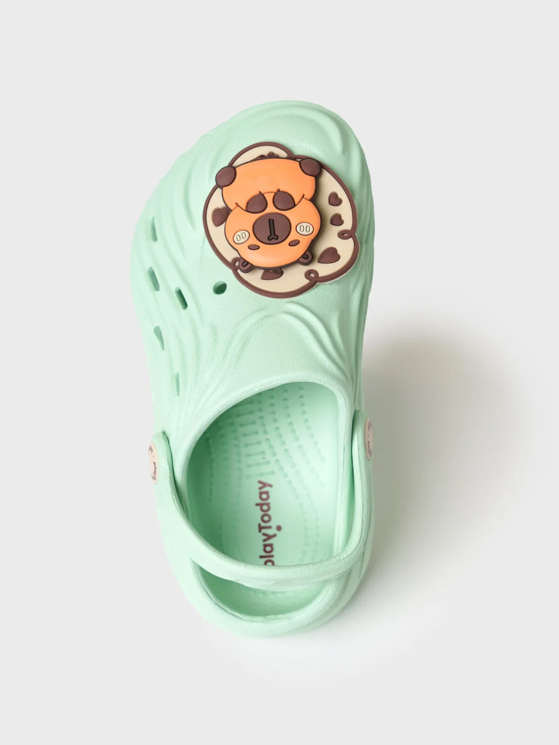 Милые сабо для девочки из облегченного и прочного ЭВА. Материал хорошо моется. Форма модели учитывает эргономику стопы. Модель имеет перекидной ремешок фиксации ноги. Модель декорирована крутящимися патчами со смешным капибара