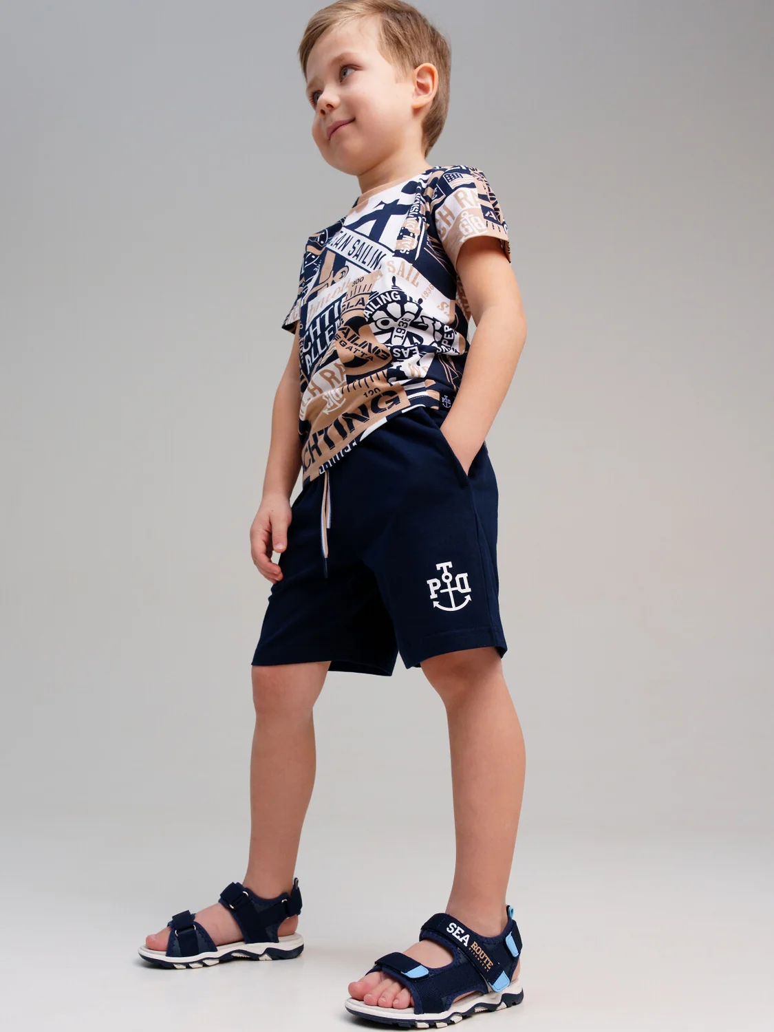 Сандалии детские для мальчика. Сандалии выполнены из искусственной кожи, обладающий высокими износостойкими свойствами, и текстиля. Стелька выполнена из свиной кожи. Текстильная подкладка c высоким содержанием хлопка 80% обладает высокой гигроскопичностью. Удобные ремни с липучками позволяют регулировать обувь на любой подъем. Гибкая двухсоставная подошва из ТПР имеет повышенную износостойкость.