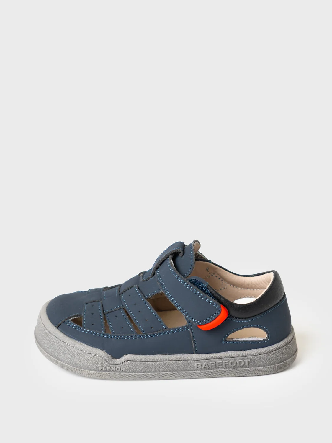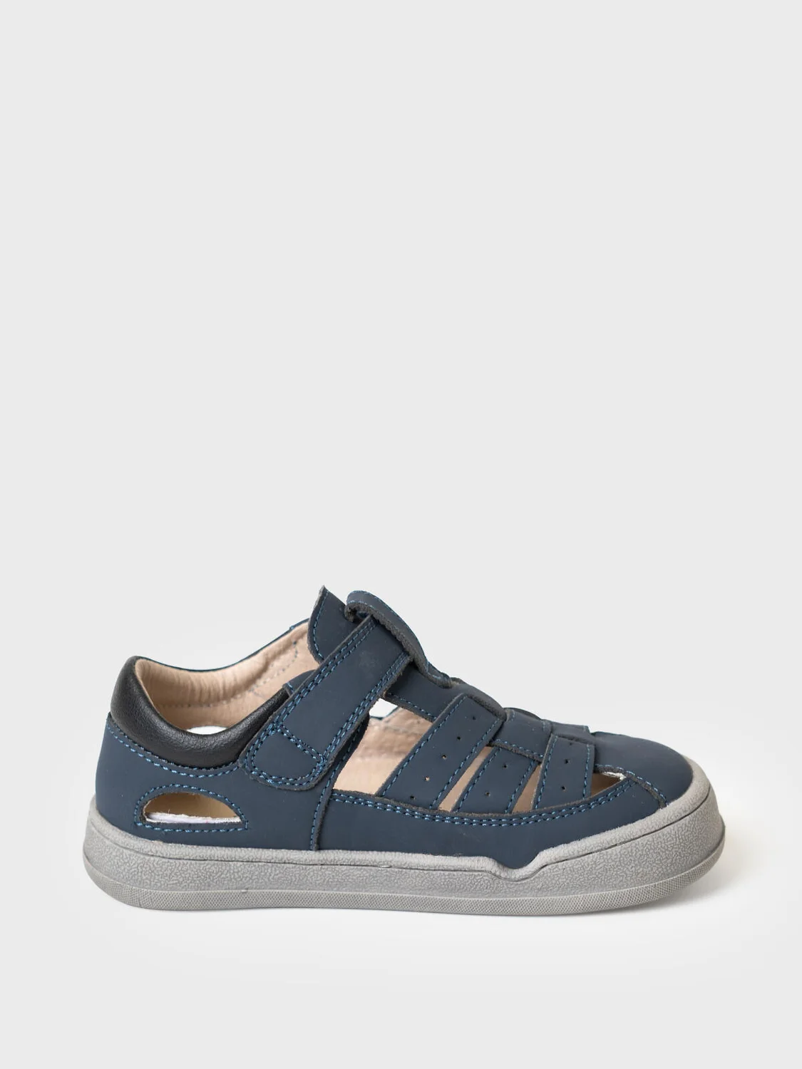 Сандалии для мальчика с закрытой носочной и пяточной частью выполнены из искусственного нубука. Удобный ремень с липучкой позволяют регулировать обувь на любой подъем и позволяют ребенку обуваться самостоятельно. Подкладка выполнена из натуральной свиной кожи. Стелька выполнена из натуральной кожи. Подошва из ТПР гибкая и нескользкая. Подошва дополнительно прошита по бортику для дополнительной прочности и гибкости. Парфюмированная подошва имеет запах кокоса. Модель выполнена по технологии BAREFOOT (босоногая обувь): широкая носочная часть повторяет естественную форму стопы ребенка, легкая, гибкая и хорошо амортизирующая подошва, специальный рисунок протектора подошвы, имитирующий присоски осьминога для лучшего сцепления с дорогой.