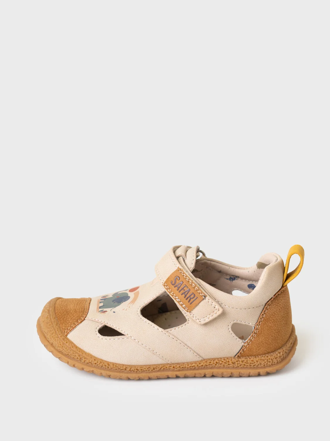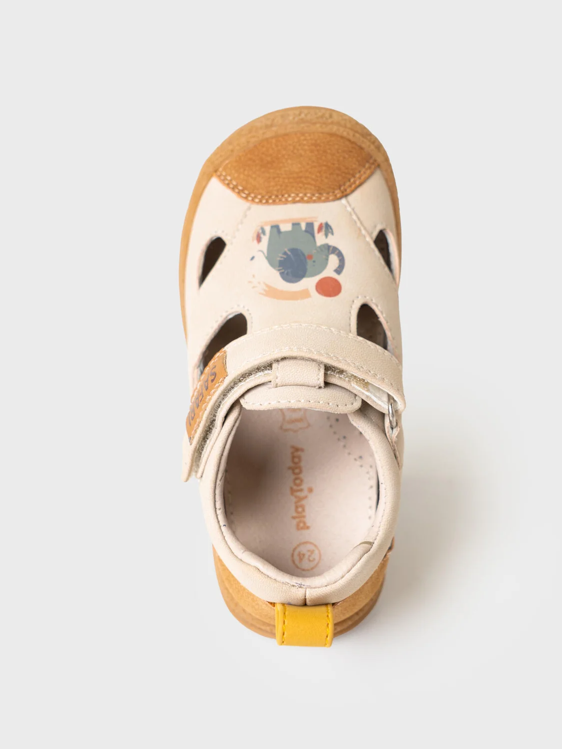 Сандалии для мальчика с закрытой носочной и пяточной частью выполнены из искусственного нубука. Удобный ремень с липучкой позволяют регулировать обувь на любой подъем и позволяют ребенку обуваться самостоятельно. Подкладка выполнена из принтованной натуральной свиной кожи. Стелька выполнена из натуральной кожи и имеет анатомический элемент для поддержания свода стопы в правильном положении. Подошва из ТПР гибкая и нескользкая. Парфюмированная подошва имеет запах кокоса.