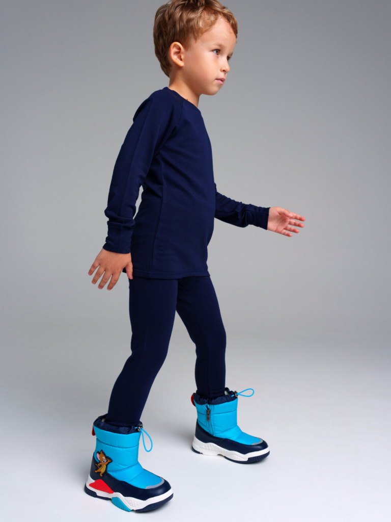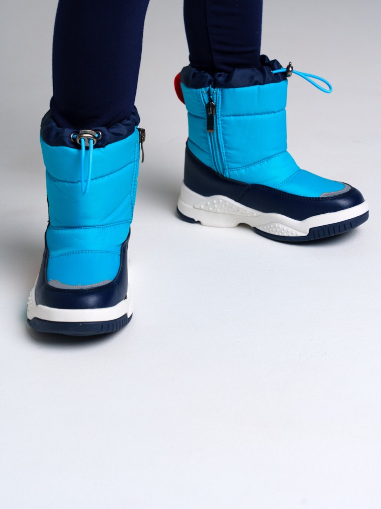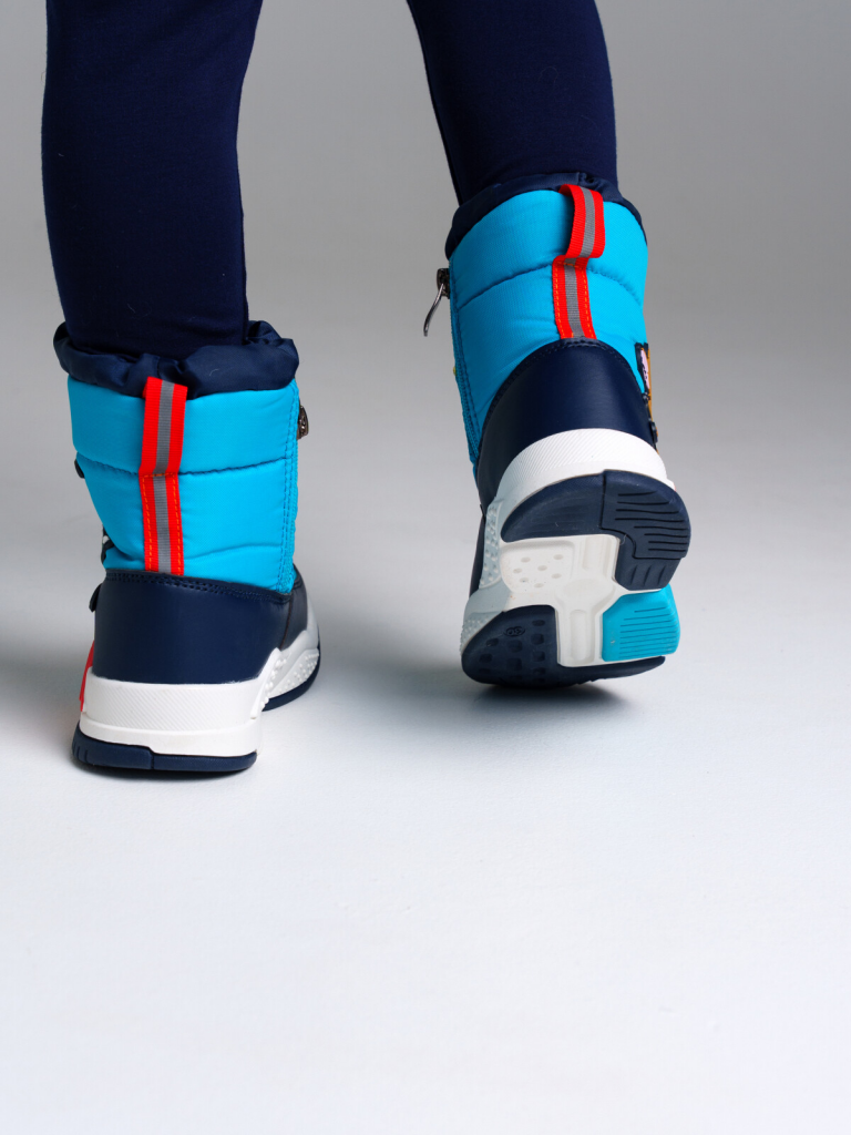 Верх из искусственной кожи и текстильного материала с водоотталкивающим покрытием. Подкладка и стелька выполнены из шерстяного меха 80%. Застежка на молнию. Глухой клапан в области застежки защищает от проникновения влаги внутрь. Формоустойчивый задник поддерживает стопу в правильном положении. Подошва имеет противоскользящий протектор. Съемная стелька позволяет хорошо просушить обувь после прогулки. Рекомендованный температурный режим от 0°С до -15°С. Основной материал: 100% полиэстерДополнительный материал: 100% искусственная кожа