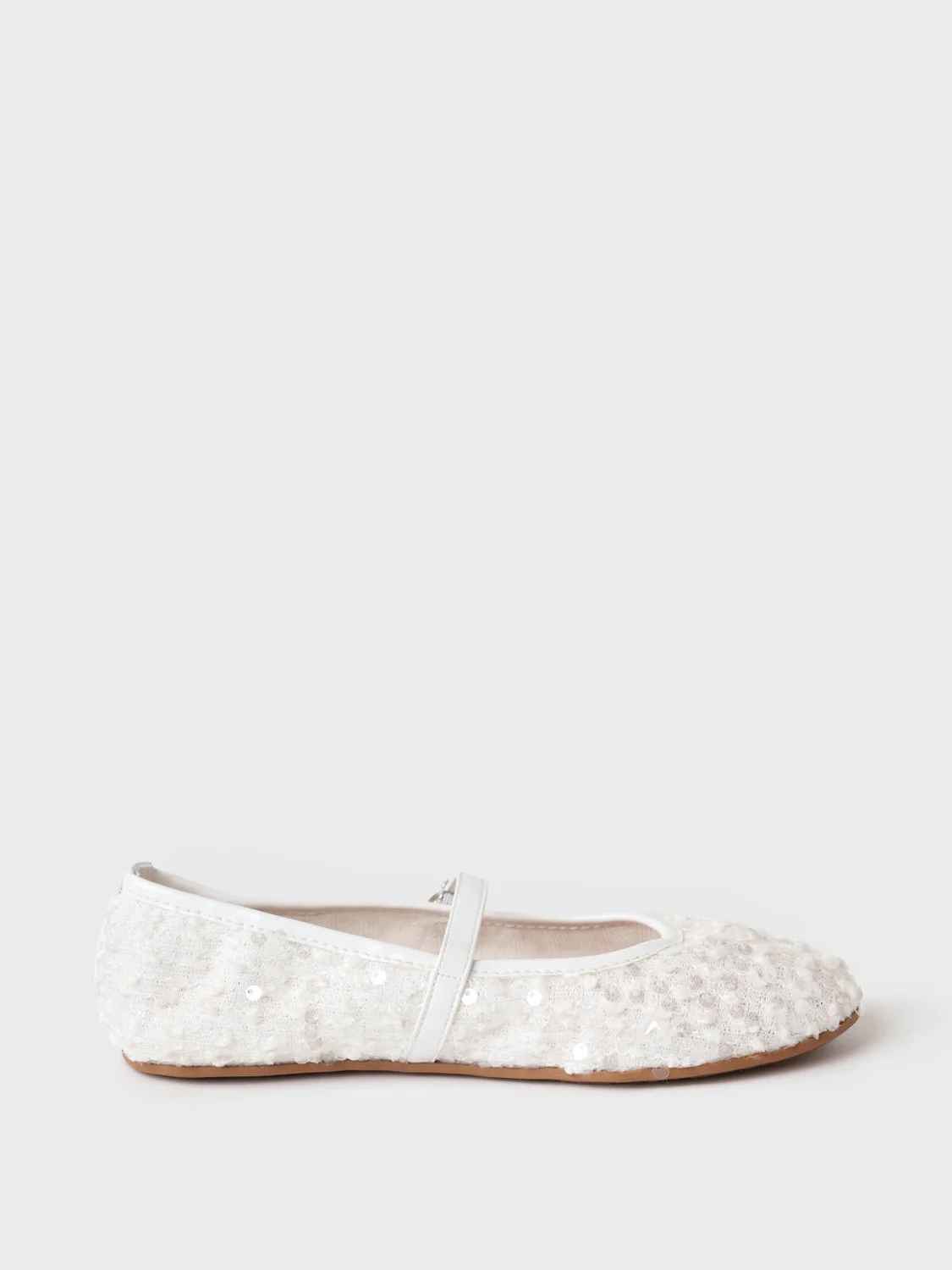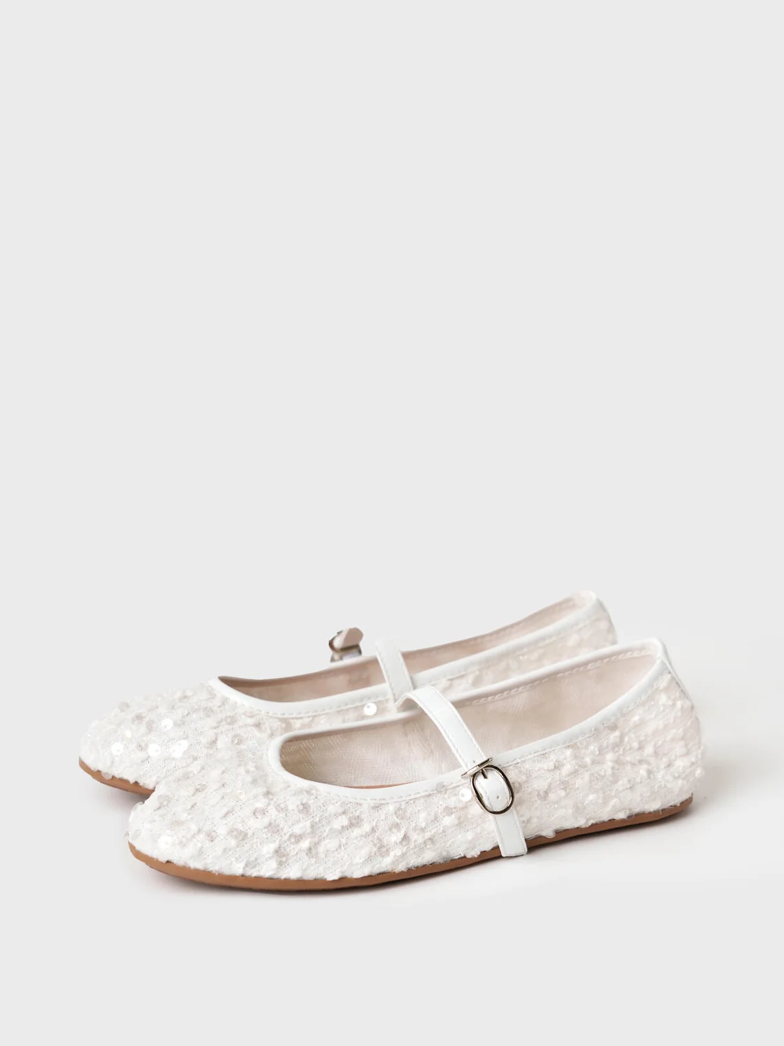Нарядные балетки с пайетками украсят как повседневной образ, так и будут прекрасным дополнением к нарядному платью. Туфли выполнены из дышащего текстиля без подкладки. Стелька - натуральная ламинированная свиная кожа. Балетки имеют чересподъемный ремешок. Пряжку не надо расстёгивать, она удобно закрывается на крючок. Туфли имеют очень легкую и гибкую резиновую подошву.