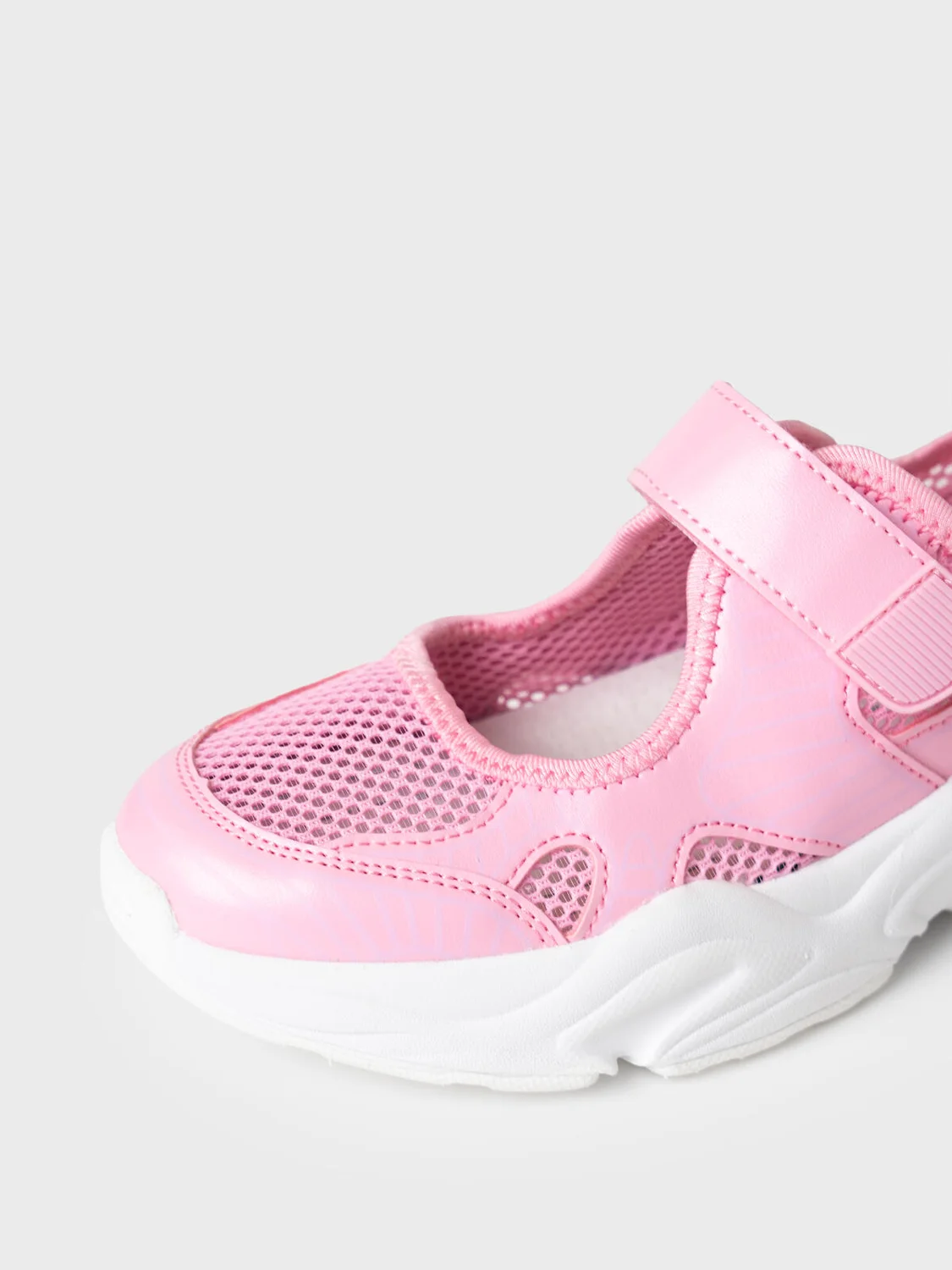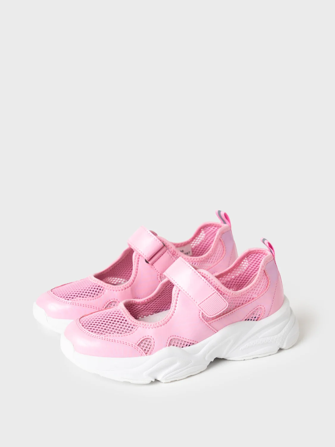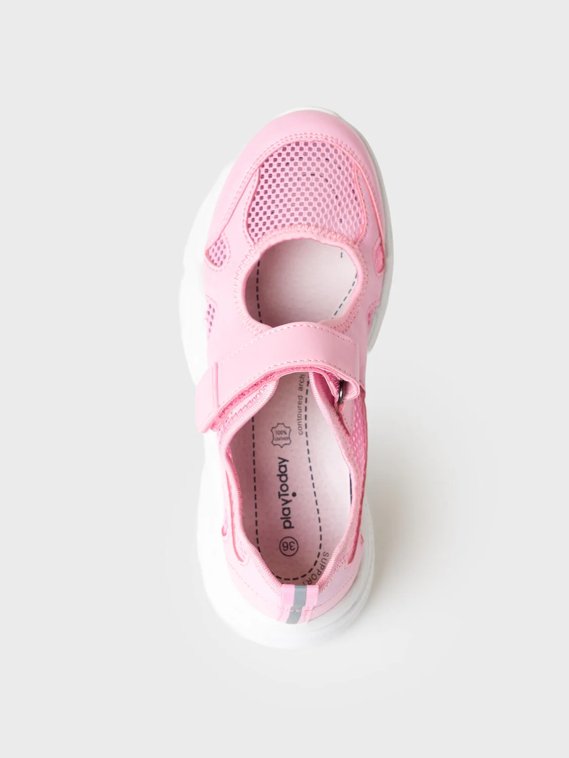 Спортивные туфли для девочек. Туфли выполнены из крупной сетки с отделкой из искусственной кожи. Обувь полностью дышит. Возвратная липучка регулируется на любой подъем и создает удобство при обувании. Профилированная стелька из натуральной кожи с анатомической формой подсводника обеспечивает правильную нагрузку на стопу. Модель имеет светоотражающие элементы. Эргономичная форма колодки обеспечивает правильное формирование стопы ребенка. Двухсоставная подошва из ЭВА и ТПР не скользит и устойчива к истиранию.