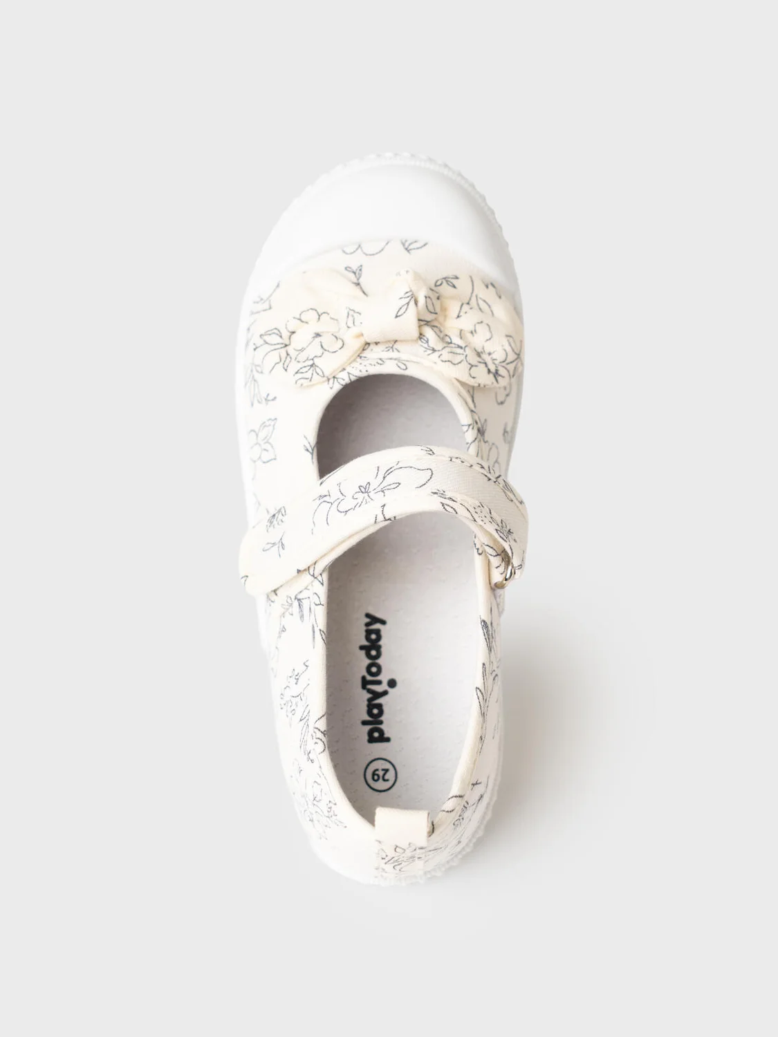 Текстильные туфли для девочки. Туфли выполнены в стиле Прованс. Удобная возвратная липучка позволяет ребенку обуваться самостоятельно. В обуви используется текстильная 100% хлопковая подкладка, которая обладает высокой гигроскопичностью. Съемная стелька из свиной натуральной кожи имеет анатомический элемент для поддержания свода стопы. Облегченная подошва из ПВХ гибкая, не скользит и устойчива к истиранию.