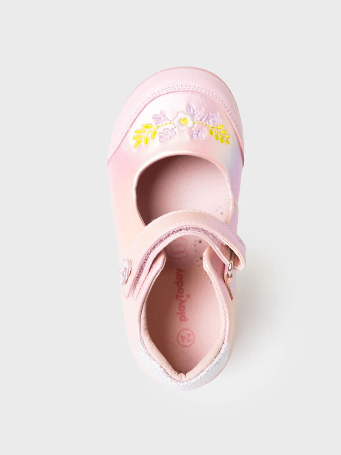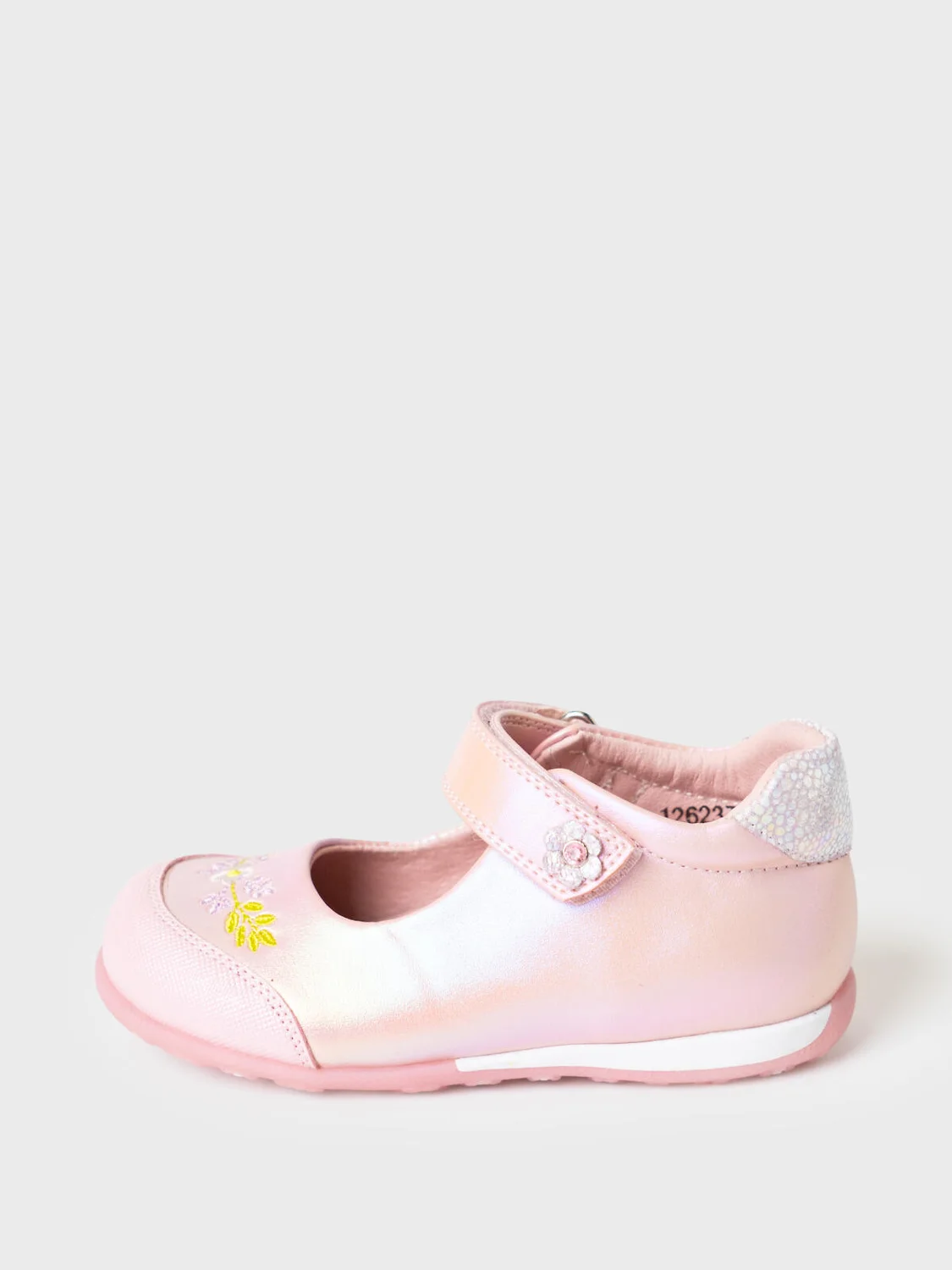 Милейшие туфли для девочки выполнены из перламутровой искусственной кожи. На носочной части стоит специальный материал с защитным покрытием. Удобный возвратный ремень с липучкой позволяют регулировать обувь на любой подъем и позволяют ребенку обуваться самостоятельно. Подкладка и стелька выполнены из натуральной кожи. Стелька имеет анатомический элемент для поддержания свода стопы в правильном положении. Подошва из ТПР легкая, гибкая и нескользкая. Кроме того рисунок подошвы напоминает цветочную поляну - он весь состоит из больших и маленьких цветочков. Парфюмированная подошва имеет запах жевательной резинки.