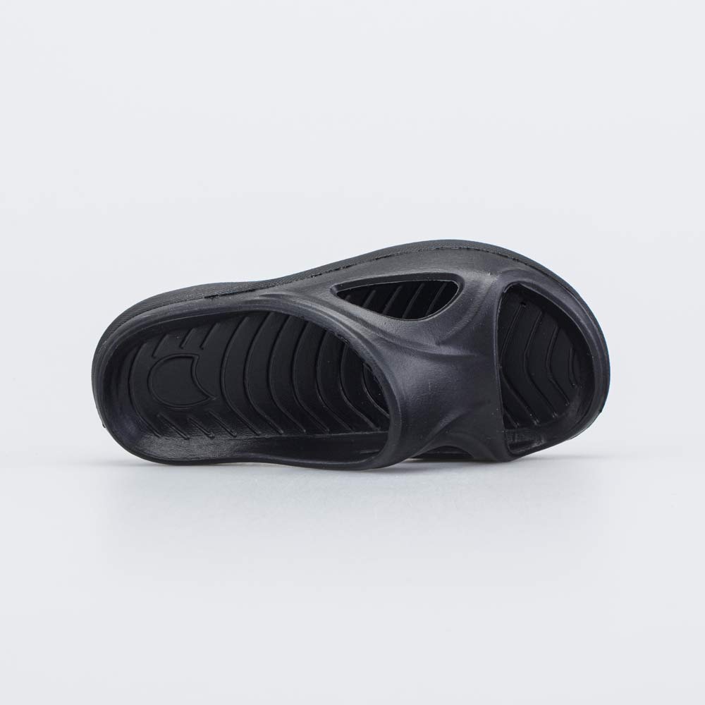Лёгкие детские сланцы черного цвета отлично дополнят пляжный образ мальчика или девочки.