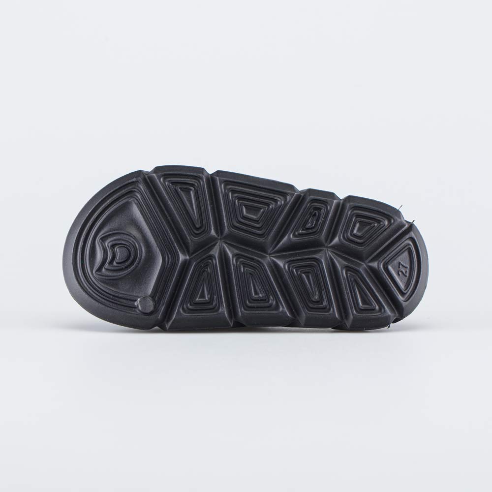 Летняя пляжная обувь выполнена из материала ЭВА. Пляжные сланцы для мальчика или для девочки отлично подходят как обувь для прогулок, для моря или для бассейна. Универсальный черный цвет дает возможность сочетать модель с разными образами.