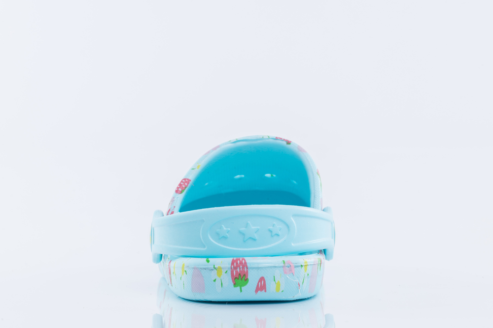 Летняя пляжная обувь с закрытом носом полностью выполнена из материала ЭВА – такой вариант часто называют «резиновые сабо». Пляжные сабо для девочки отлично подходят как обувь для купания, для моря или для бассейна.