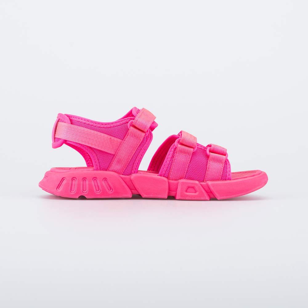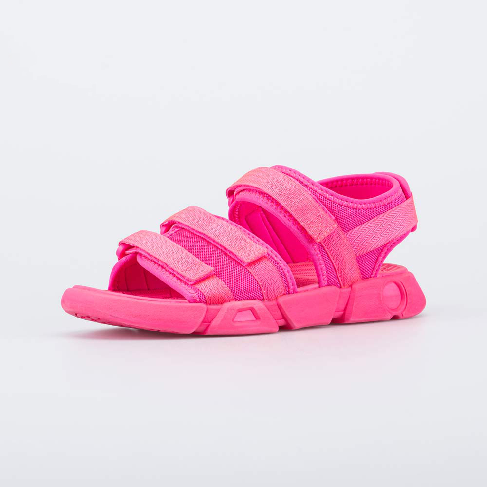 Верх обуви выполнен из текстиля ярко-розового цвета.