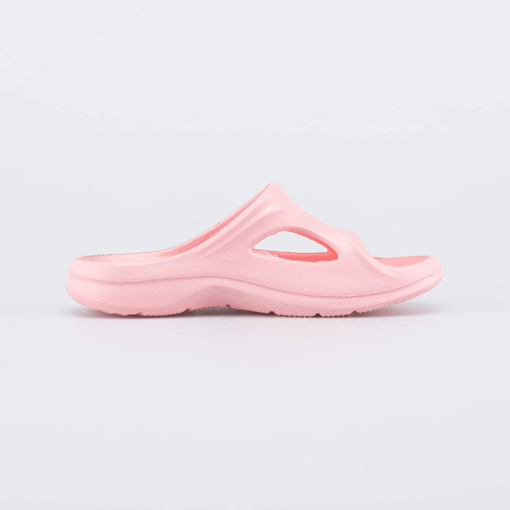 Лёгкие детские шлепанцы розового цвета отлично дополнят пляжный образ девочки.