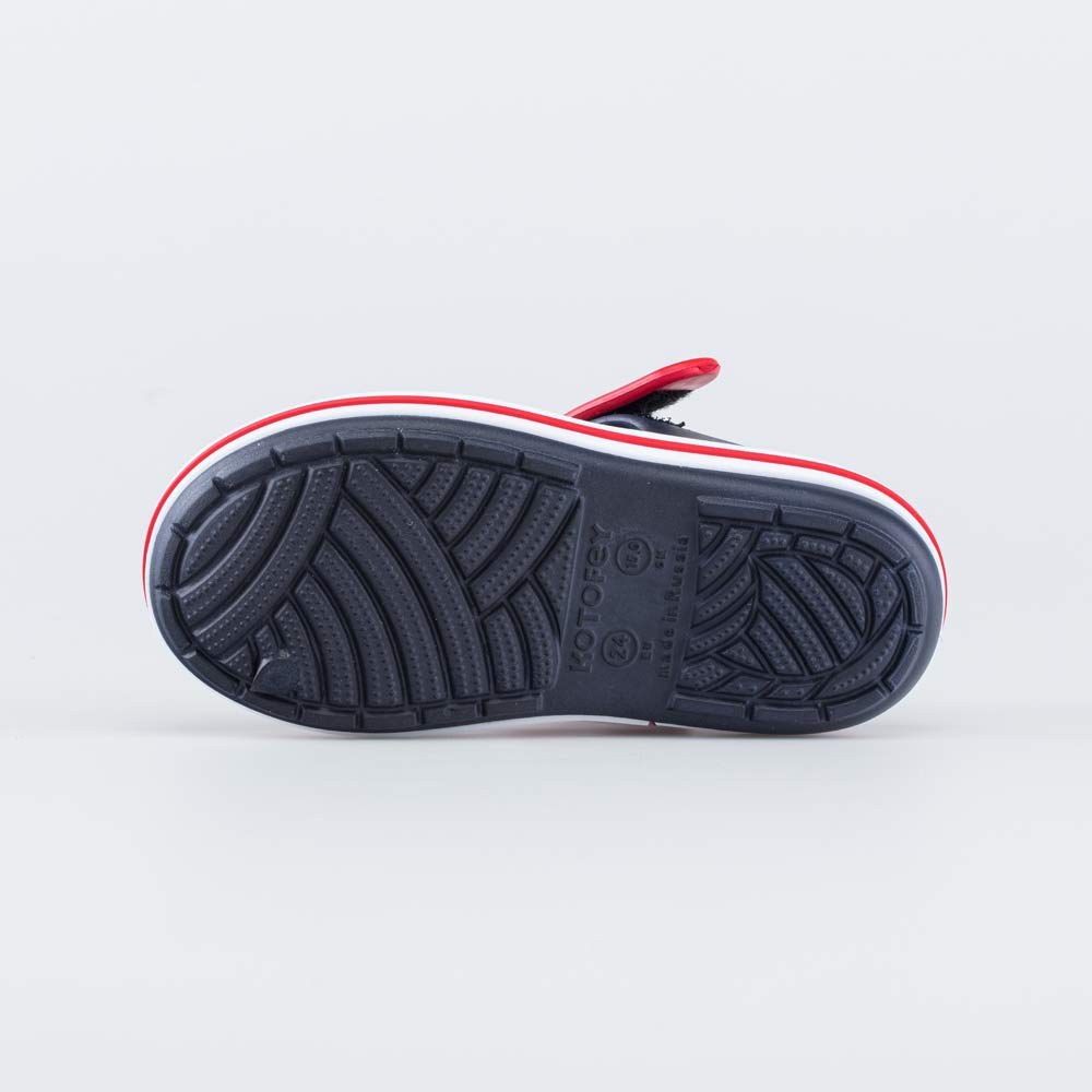 Детские сандалии красно-синего цвета дополнят пляжный образ мальчика школьного возраста.