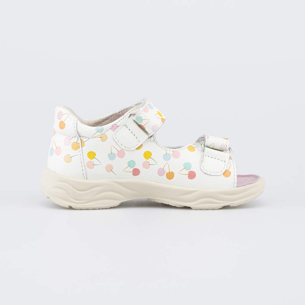 Летние кожаные сандалии Котофей с открытым носом украшены принтом в виде акварельных вишенок и отлично подходят для прогулок или в садик.