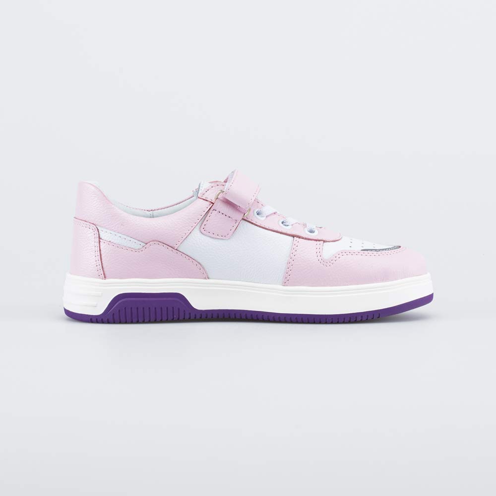 Модель выполнена в сочетании белого, розового и фиолетового цветов и украшена логотипом Котофей.
