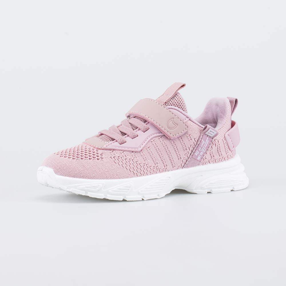 Верх розовых кроссовок выполнен из вязаного полиэстера, который обеспечивает высокую воздухопроницаемость и сохраняет комфорт внутри детской обуви даже при длительной носке.