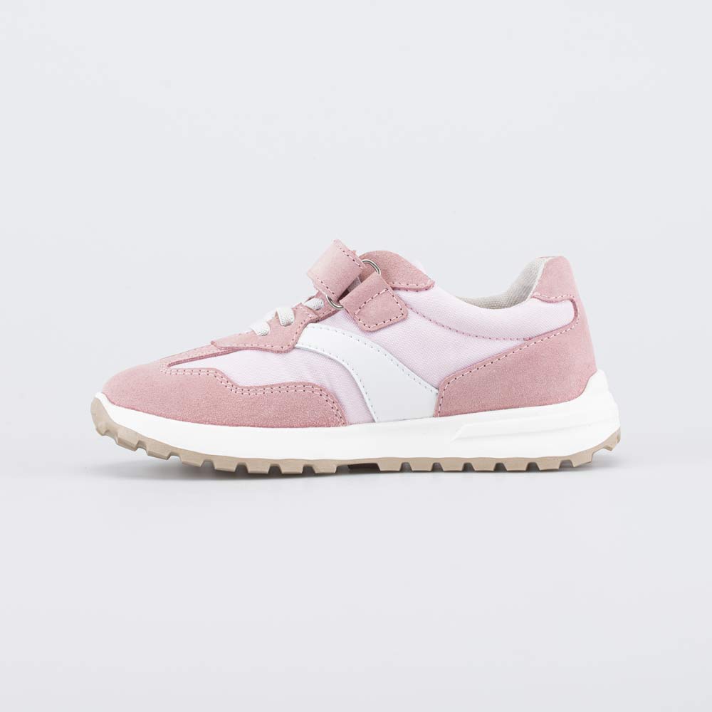 Детские кожаные кроссовки выполнены в трендовом розовом цвете и подходят для девочки дошкольного возраста.