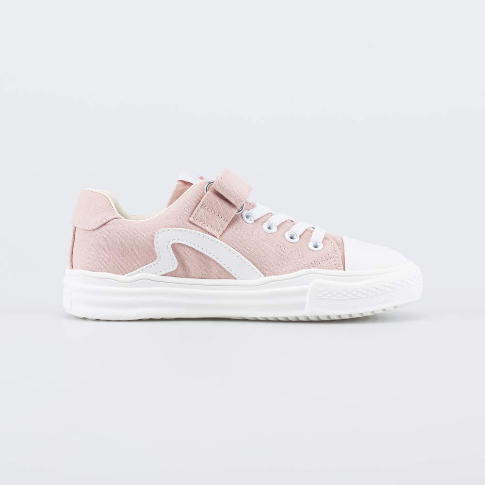 Удобные кеды, выполненные в трендовом розовом цвете с белыми акцентами, отлично дополнят образ девочки дошкольного возраста.